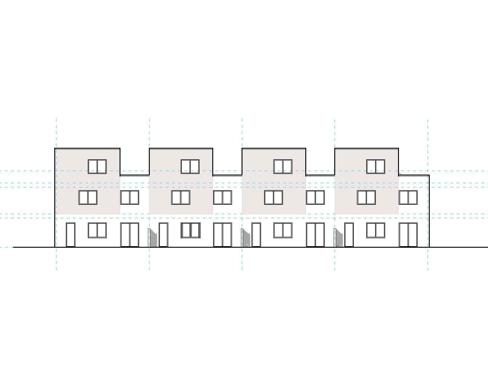 exterior shot sunny vibe with clouds add trees no flowers white and grey facade like in image architecture
