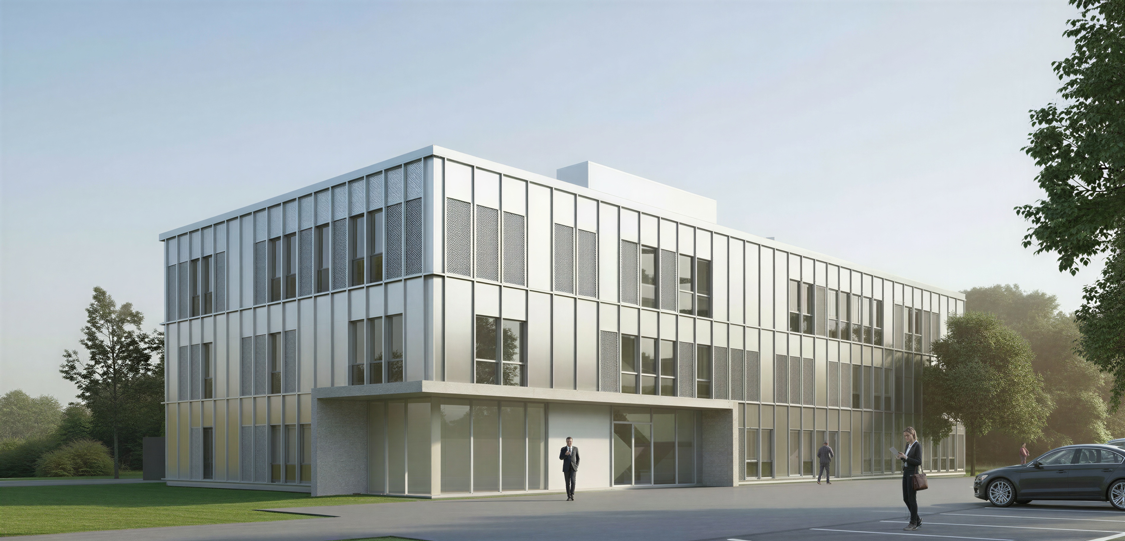 exterior shot try to apply the mood and landscape renderingstyle on the original image as an competition level rendering take the original building and dont change it just the surroundings