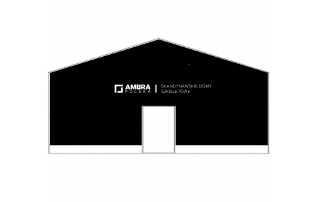 a realistic architectural visualization of a modern production hall for timber frame houses front view perfectly centered based strictly on an orthographic facade drawing the building has a simple gable roof with a gentle slope and a white finish the upper facade is covered with vertical black cladding with subtle texture while the lower part of the building is white smooth concrete or plaster base in the center of the facade there is a large double entrance door in anthracite color no changes to proportions geometry or layout everything must match the technical drawing exactly camera at eye level focal length 35 45 mm natural daylight soft shadows realistic lighting clean and minimal composition surroundings include a simple customer parking lot with marked spaces and a strip of green grass in front of the building no additional elements no people no vehicles no clutter style semi realistic architectural visualization high detail physically accurate materials neutral colors sharp but natural look