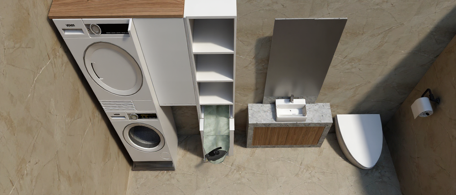 blue sky white windows and door frames natural white render keep building as is large light grey pavers outside sliding doors in a brick pattern lemon tree on left edge of photo