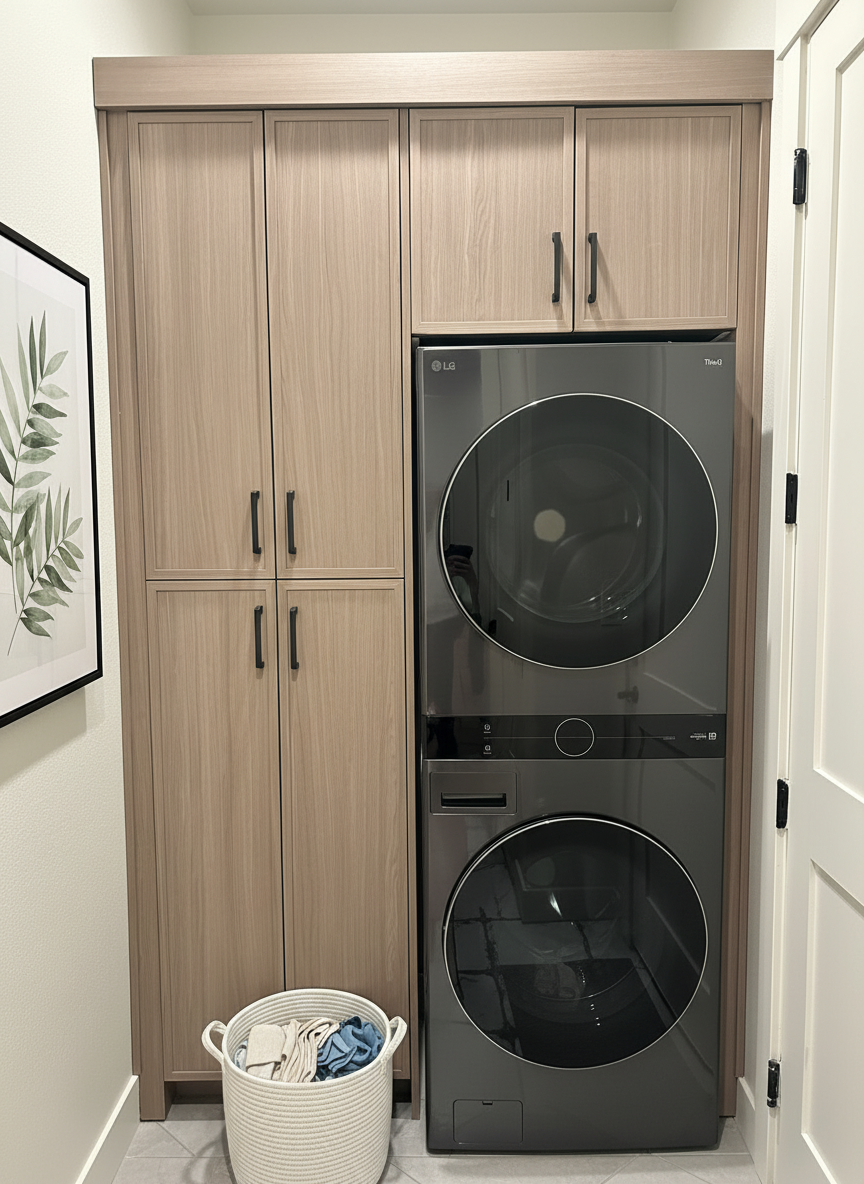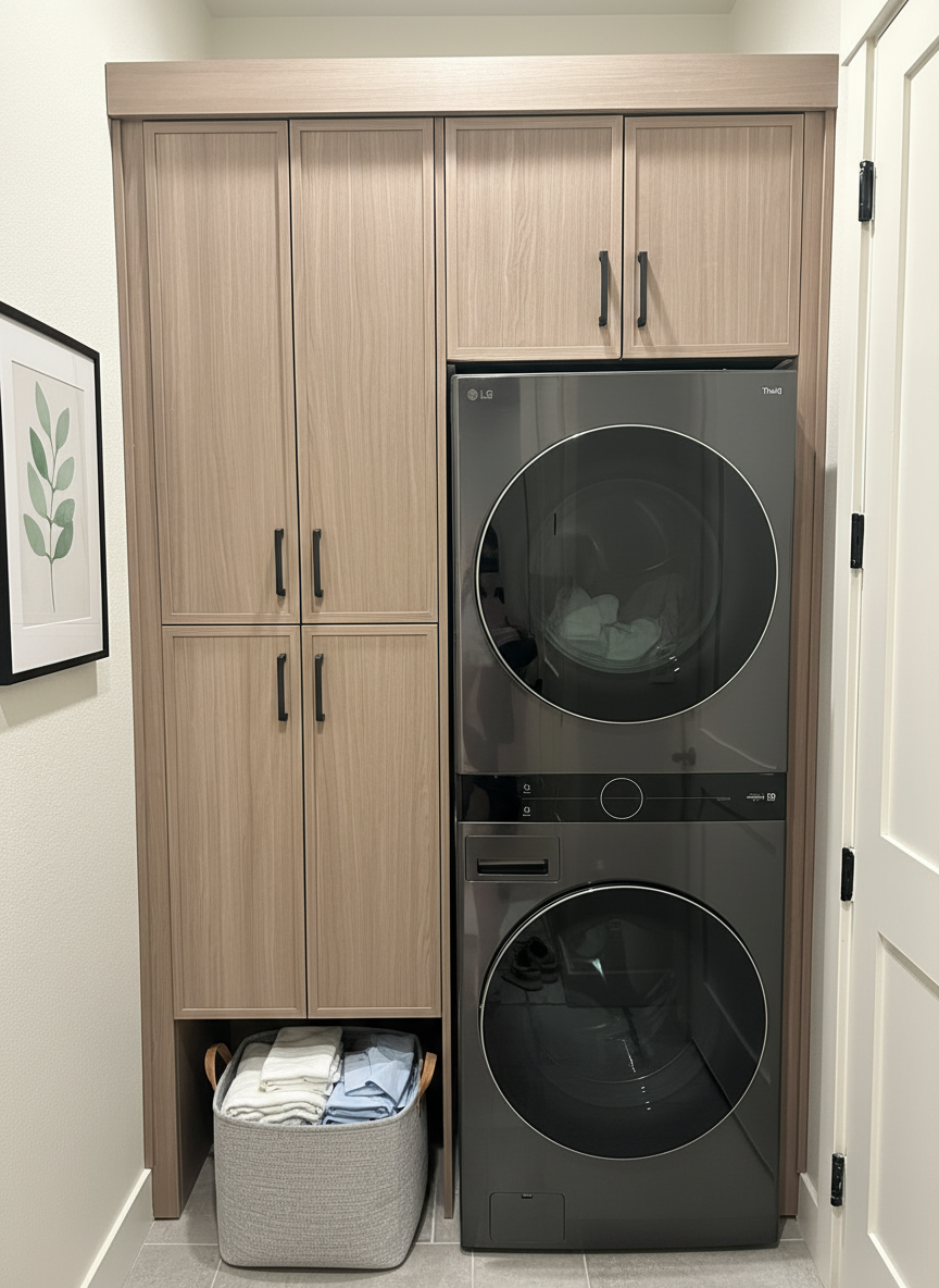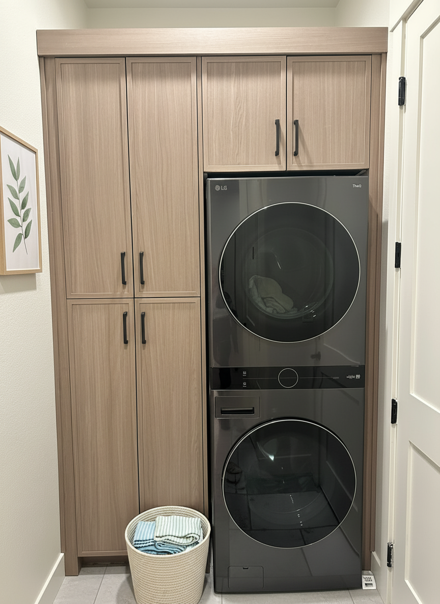 adjust the lighting to be more natural change the flooring close the lid on the toilet stage the countertop rugs and towel for a modern simple bathroom change the reflection in the mirror