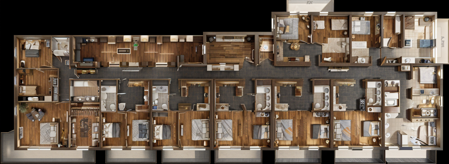 add kitchen accessories and daylight from windows add ambient light coming from under wall cabinets open shelves and under countertop of island add a white plaster finish to hood
