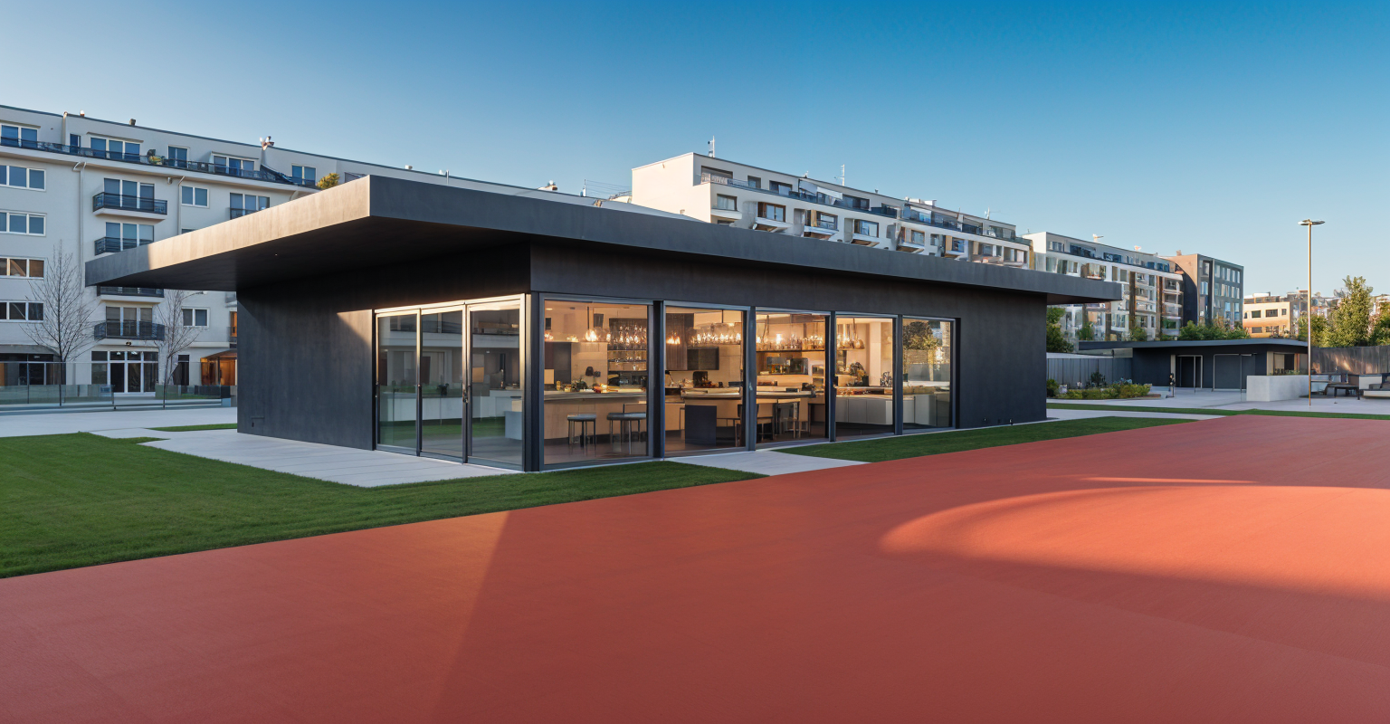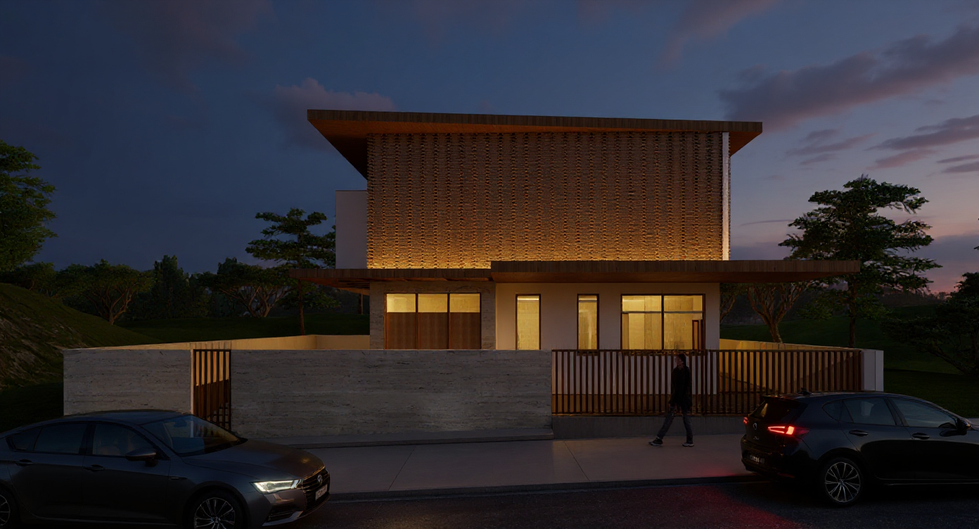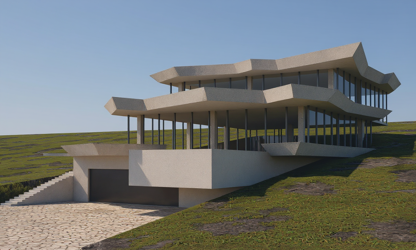 make render more realistic make grass more realistic add a few trees in the back not too many give reflection on glass