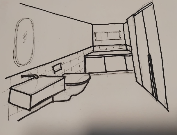 exterior shot please prepare a luxury urban cloakroom with low paneled units on the back wall there is a window also on the back wall that is 50cm high and almost goes from wall to wall on the right hand side there is al waredrobe with plain front doors the floor in a concrete finish and on the left hand wall the tiles go up to 120cm from floor these tiles are square and off white