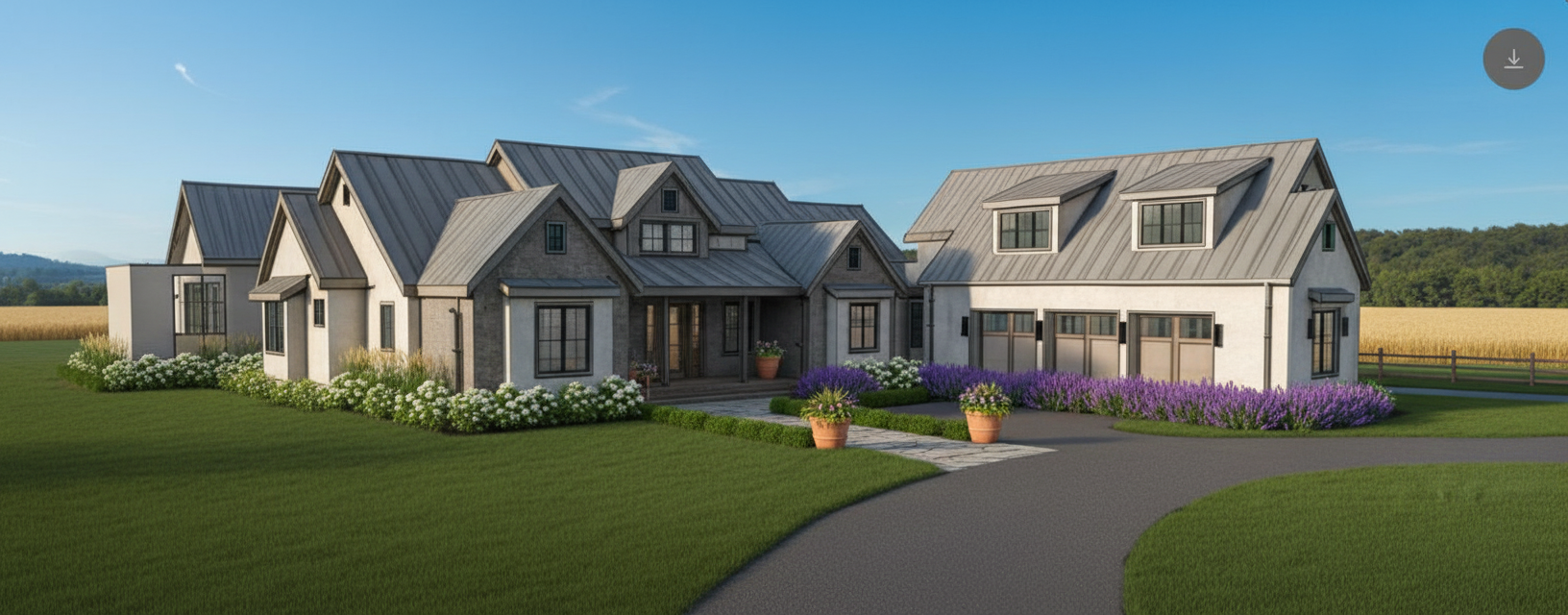 kitchen render with oak wood floors that are more grey base cabinets to be shaker style in a nice maple wood in a light warm stain uppers to be black with glass and hardware to be brushed gold counters to be a white marble with grey veins appliances to be stainless steel architecture