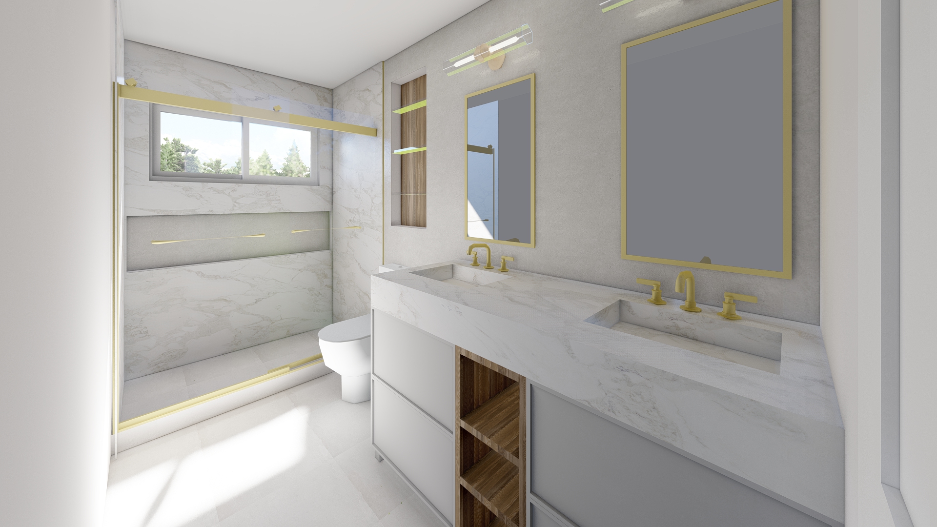 interior bathroom brushed gold fixtures and hardware light in the shampoo niche insert two recessed lights in ceiling