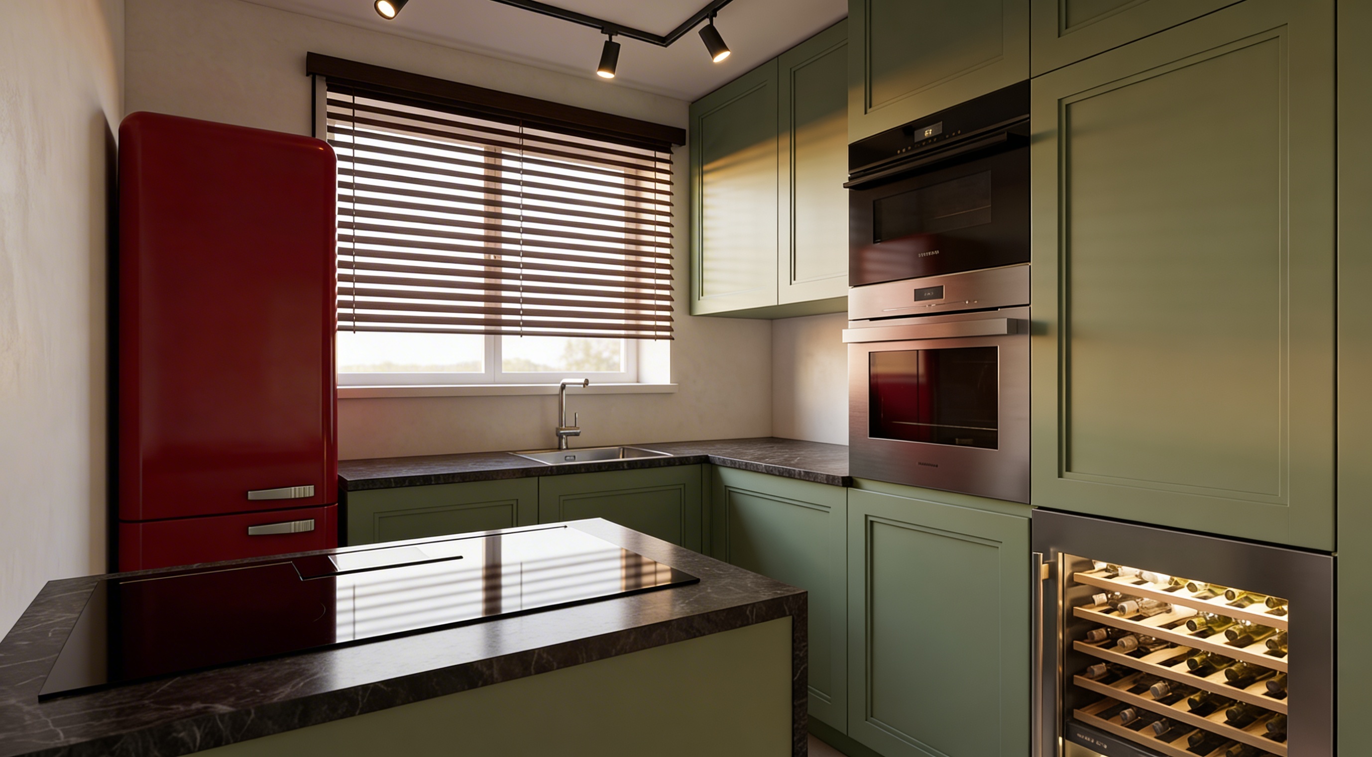 natural daylight from the left window turn on the 2 wall light and add led in the niche cabinet do not add anything to the cabinets add 4 5 down lights to create a cosy setting