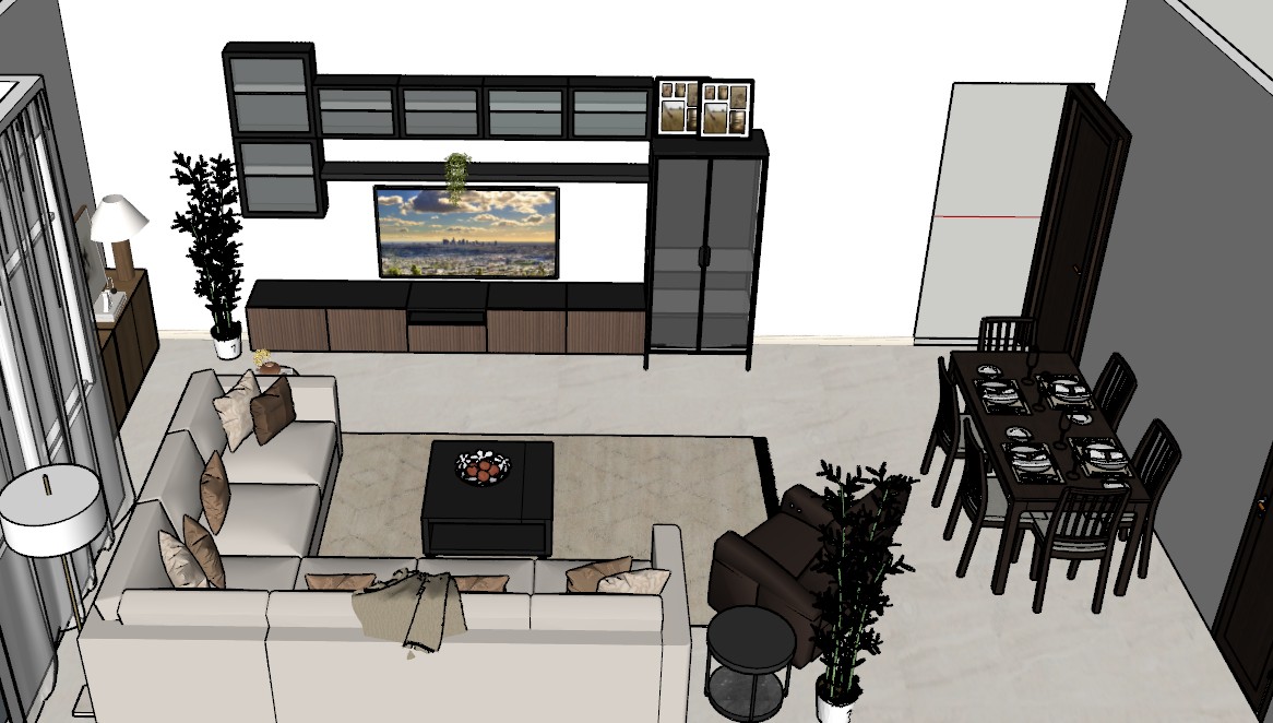 interior shot convert this sketchup 3d interior render into a hyper realistic visualization modern minimalist living room with natural daylight soft shadows realistic materials for wood flooring marble countertop and fabric sofa high quality textures detailed lighting reflections photorealistic finishes cinematic look ultra high resolution architecture