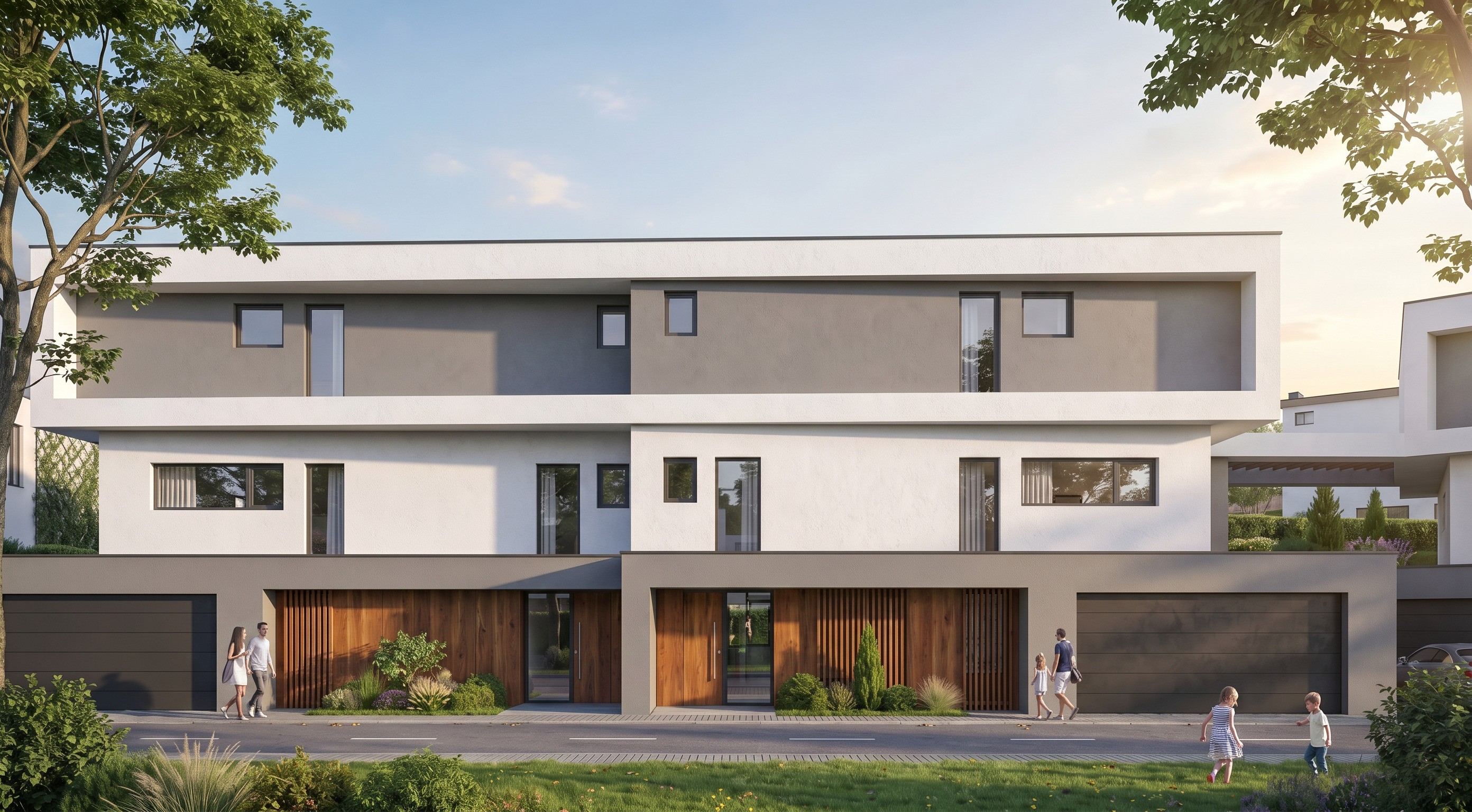 change only wood material with material from the reference image open one garage door and show car parked inside and make garage interior from visible concrete keep everything else unchanged