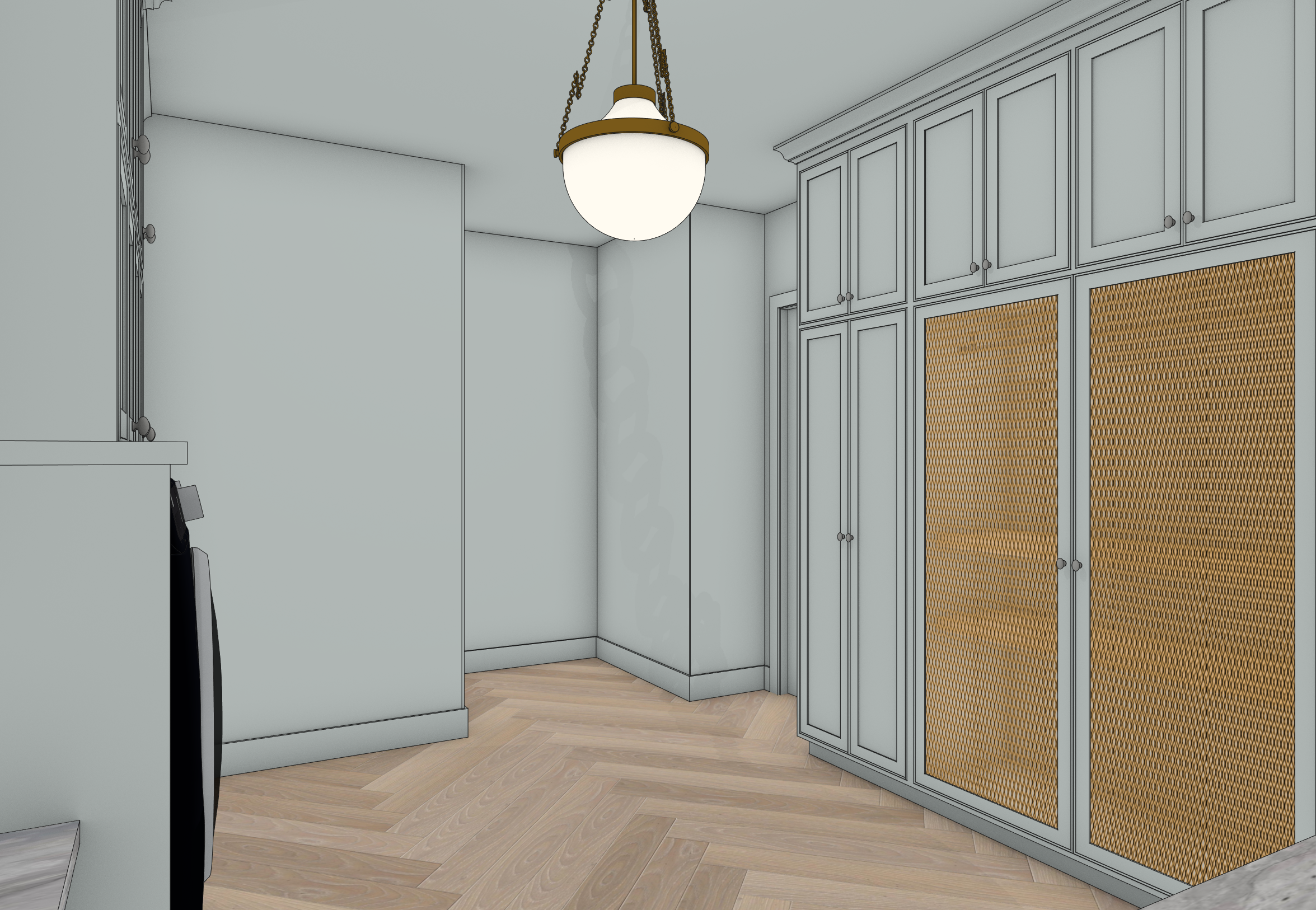 change the color of the walls only to sherwin williams alabaster keep the color of the ceiling and the cabinets the same as the original picture