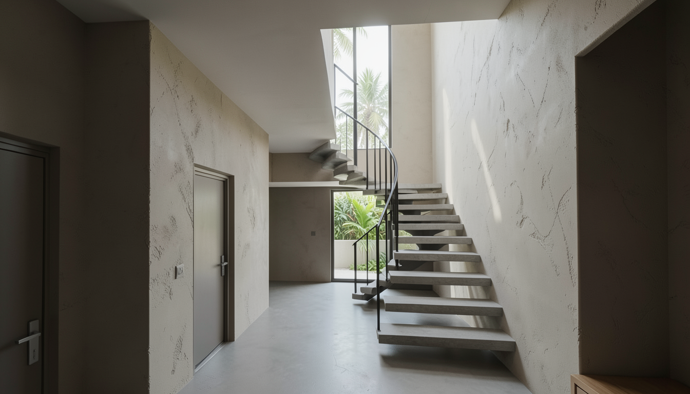 ultra photorealistic interior render high end architectural visualization warm soft ambient lighting with indirect led strips integrated in ceiling and walls creating smooth light gradients low contrast cozy and elegant atmosphere neutral warm color palette beige soft taupe warm wood tones muted browns no strong saturation soft shadows realistic light falloff global illumination natural light subtly filling the space balanced exposure no harsh highlights matte surfaces realistic fabric textures refined materials cinematic composition shallow depth of field professional interior photography look v ray corona render style 8k resolution editorial quality luxury design no overexposed lighting no cold white light no strong contrast no cgi look no oversharpening no unrealistic reflections no saturated colors