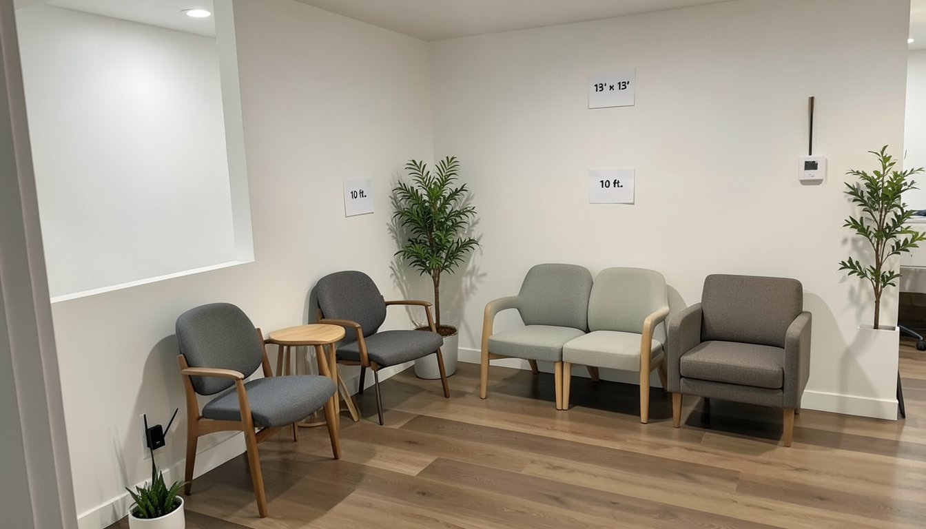 rooftop shot make this rendering more realistic and add doorswings where they are indicated in white on the plan