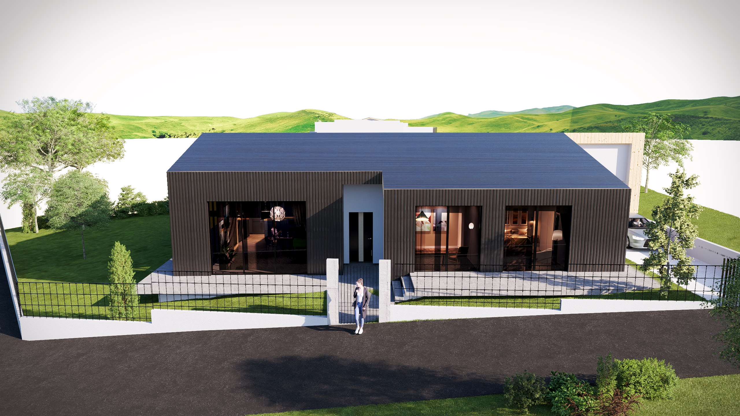 a manicured lawn layered flower beds low maintenance shrubs native plants stone pathway leading to the entrance