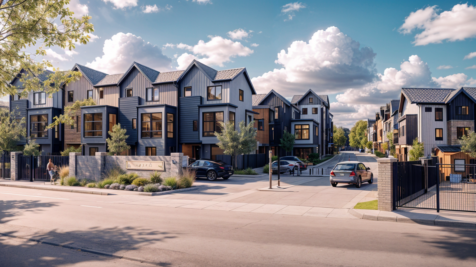 a florida coastal two story house exterior with a clean and elegant aesthetic the walls are painted in a light gray with a smooth stucco finish and off white siding the metal roof features a light gray with a subtle metallic sheen the windows are large and framed in sleek white offering a striking contrast the garage door and trim are finished in a crisp white enhancing the modern feel the front suburban yard is landscaped with lush green grass ornalmental grass flowers and trimmed hedges adding a touch of nature the atmosphere is serene and inviting with soft natural lighting highlighting the architectural details