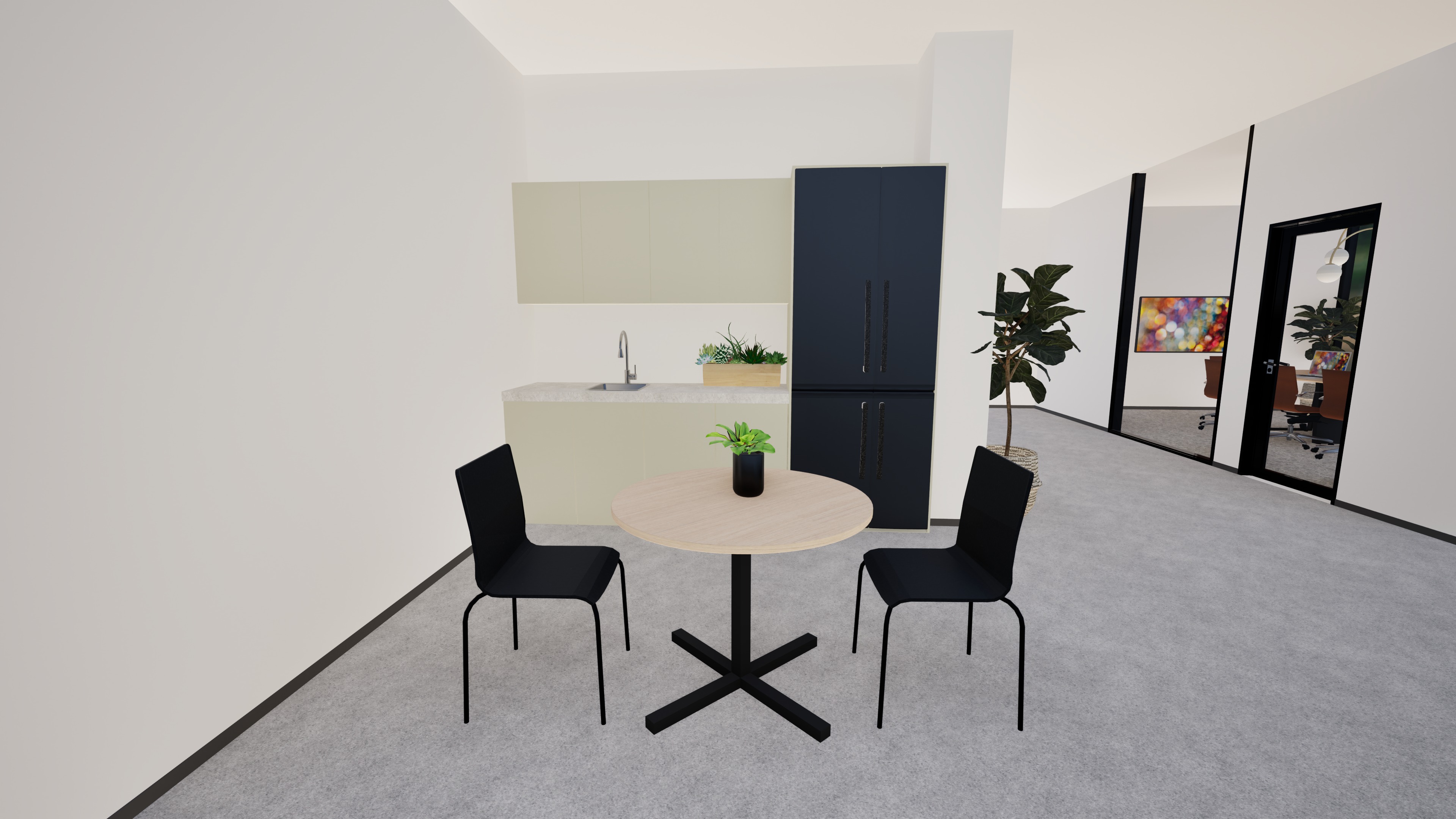 keep all materials and finishes the same add people add decor and artwort enhance lighting and quality do not add any furniture add recessed lighting