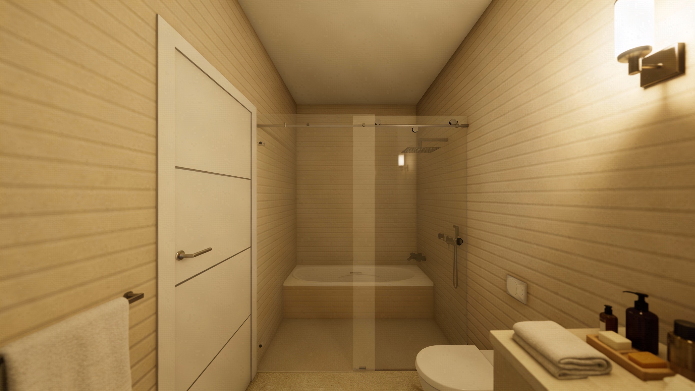 transform the provided restaurant interior image into a high end photorealistic render with neutral brightly lit space with warm highlights relaxed upscale energy while keeping everything exactly the same same proportions same bar shape same seating same ceiling structure same wall finishes same spatial configuration do not change the furniture do not change the materials do not change the composition place diners eating pizza in the existing chairs and the existing tables do not move or alter any objects geometry textures colors or furniture positions the chairs throughout the restaurant must remain exactly in the same locations and proportions but their materials should read realistically add premium table settings including wine glasses cutlery cloth napkins while keeping all tables and chairs in their exact positions include modern young guests seated at the tables enjoying pizza casually social correctly scaled tastefully integrated without crowding or obstructing architectural details add a waiter taking order from some of the diners hints of warm glow from the chandiliers soft shadows enhanced color richness and luxurious catalog level realism improve depth and realism through material textures while keeping the entire scene exactly as originally designed do not add any furniture or change the compoition or geometry add only the diners place settings the waiter and enhance the photo realism