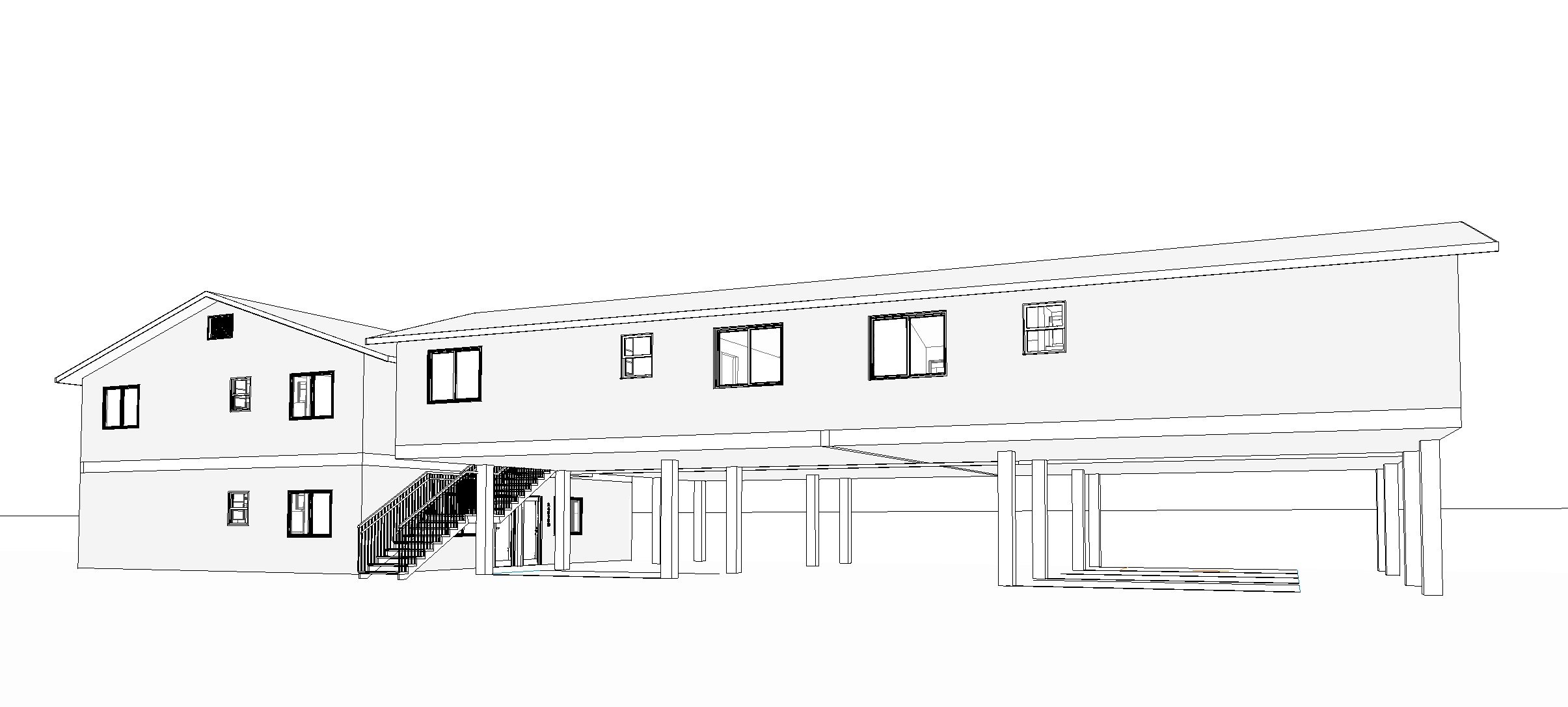 modern farmhouse design with white smoot plaster walls with black frame windows and black steel stair railings black roof with california native landscape and trees in the back ground sunny california weather