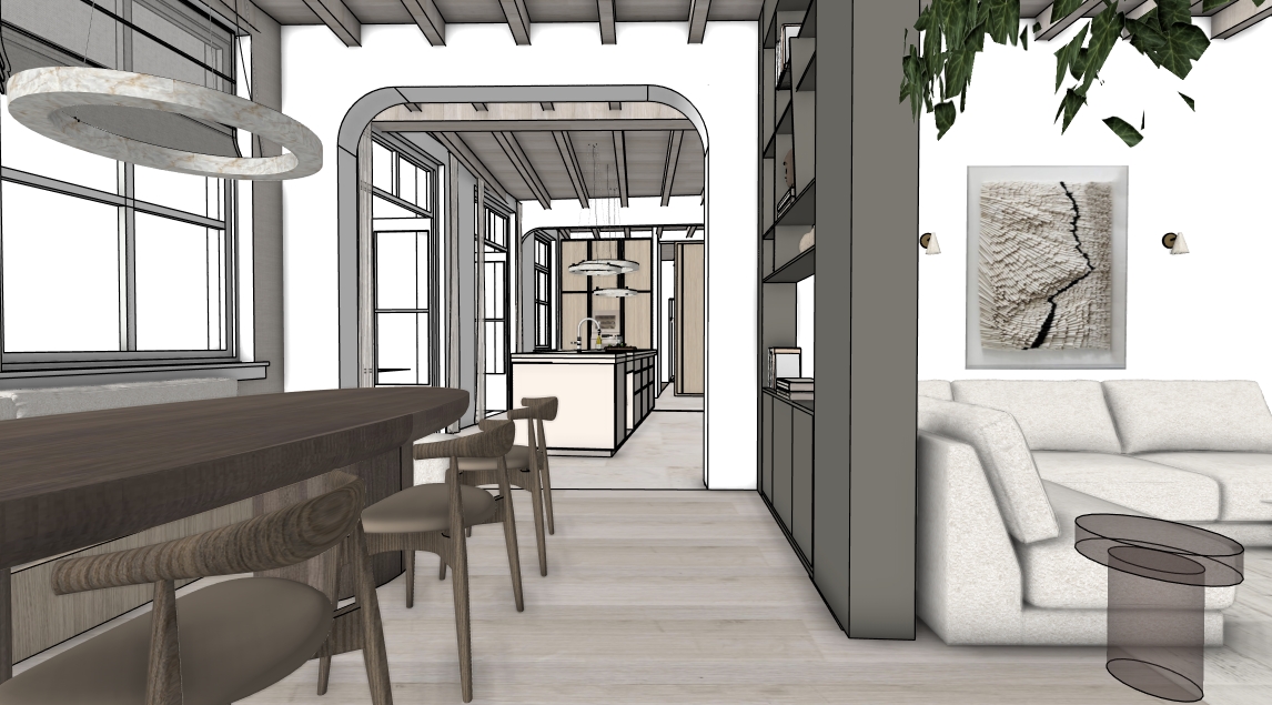 keuken kasten zijn miral paint beige en de stof op de stoel zijn boucle