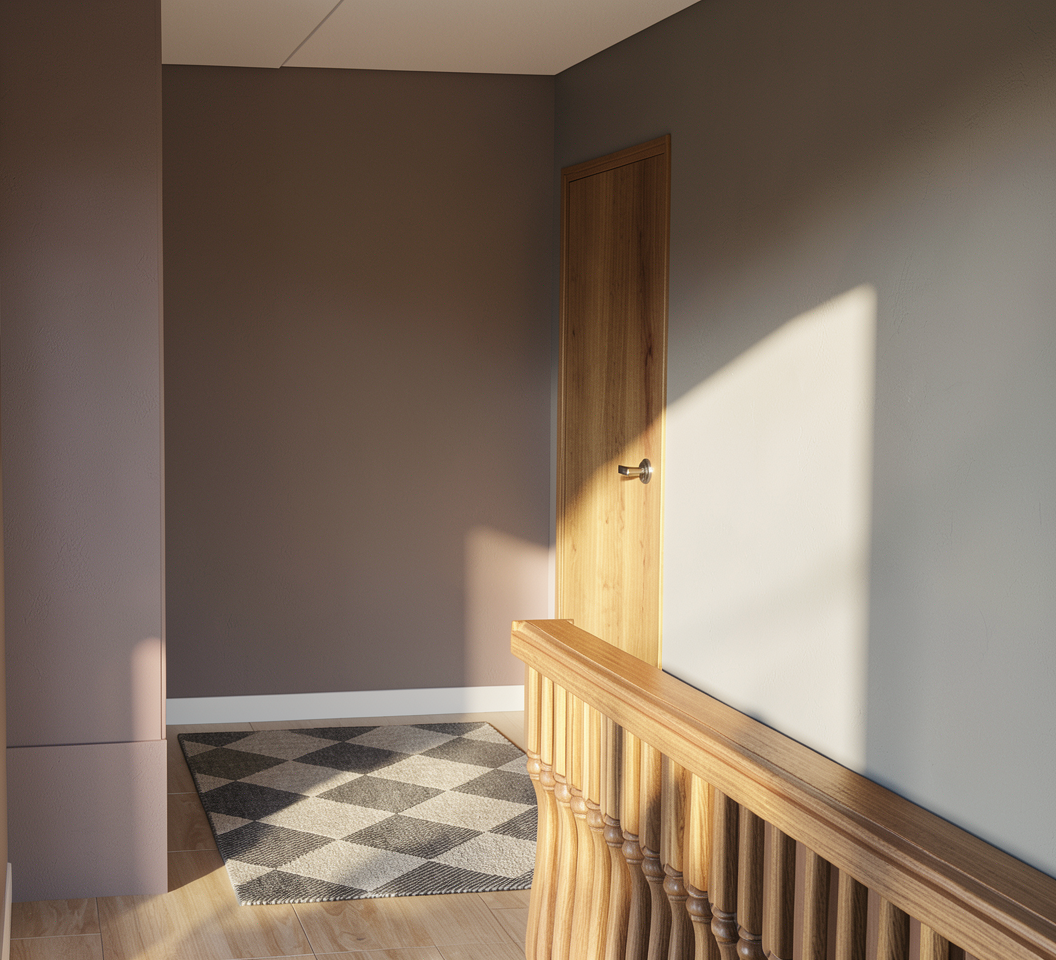 render fotorealistic make sure lights are emissive main light is natural daylight soft sunlight realistic materials real floor parquet oak bar chairs same wood as dining chairs tray on table in wood table in beige mortex same color as the walls and ceiling glass door with bronze frame stone on counter is taj mahal add led inshelves in arch in the wall remove painting on the left wall