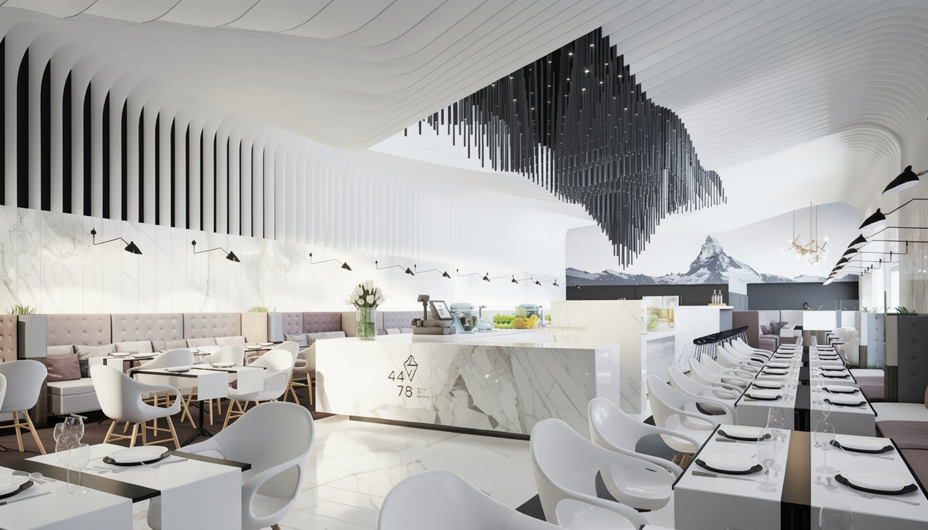 photo d architecture haut de gamme d un salon de coiffure en double hauteur vue de l ext rieur travers une immense fa ade vitr e transparente l int rieur sur le mur de gauche des tag res en ch ne clair exposent des produits k rastase et l or al professionnel entre les tag res deux fauteuils l gants c te c te avec une table basse et un miroir entour d un n on circulaire ring light un rideau en tissu pais d limite un vestiaire chic au centre du salon un espace d attente avec des fauteuils en tissu boucl tr s cosy surmont s d un luminaire sculptural en tubes de silicone fluo style diy silicone chandelier plus au fond une grande table de consultation en bois entour e de fauteuils avec un luminaire tubulaire suspendu un claustra vertical en ch ne clair s pare les espaces sur la droite une table centrale monumentale avec un arbre majestueux qui grimpe sur toute la double hauteur entour e de 6 fauteuils et de miroirs ovales r tro clair s un escalier design longe le mur plein sur la droite travers la fa ade ouest gauche on aper oit la lueur du cr puscule ambiance luxueuse chaleureuse et futuriste rendu 8k architecture d int rieur de prestige