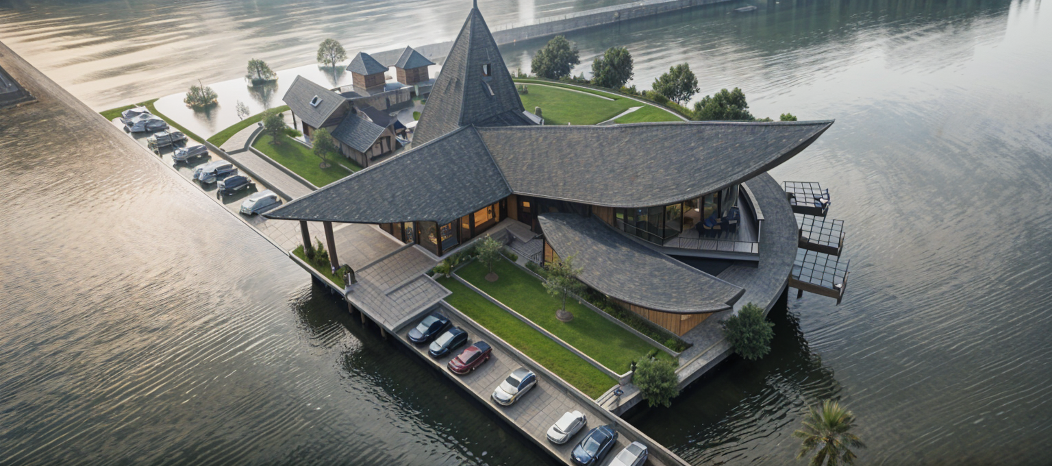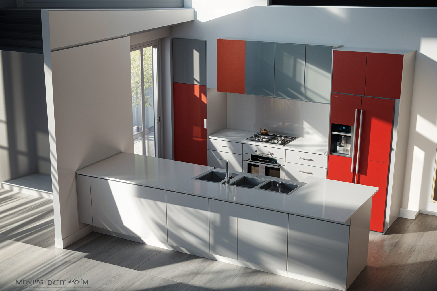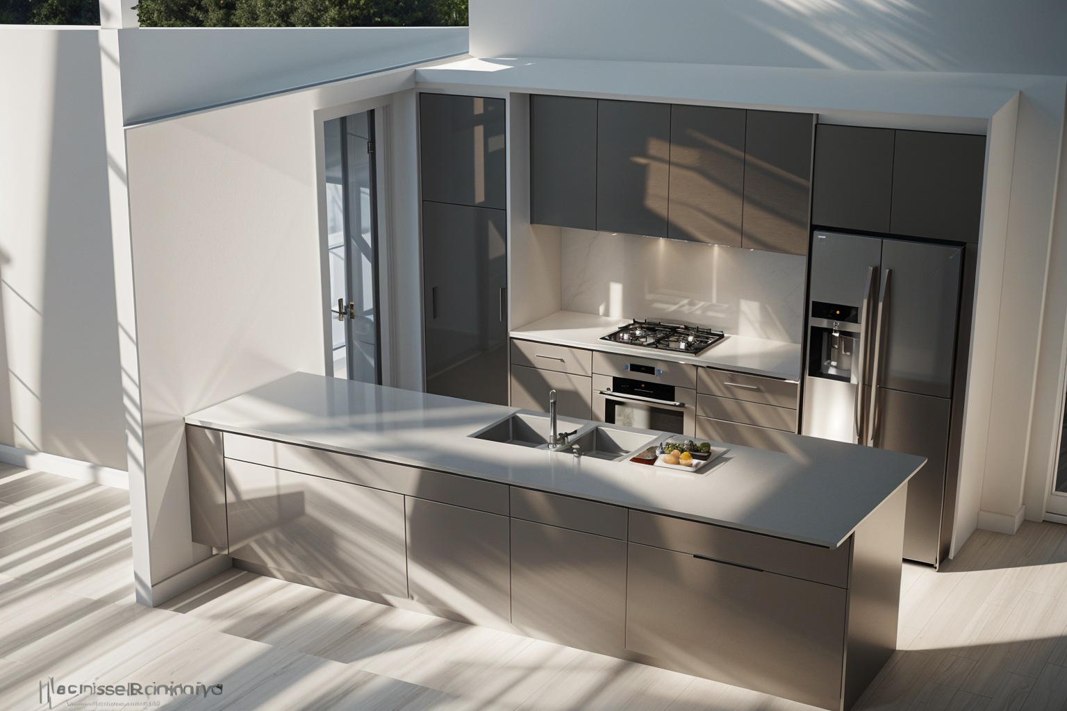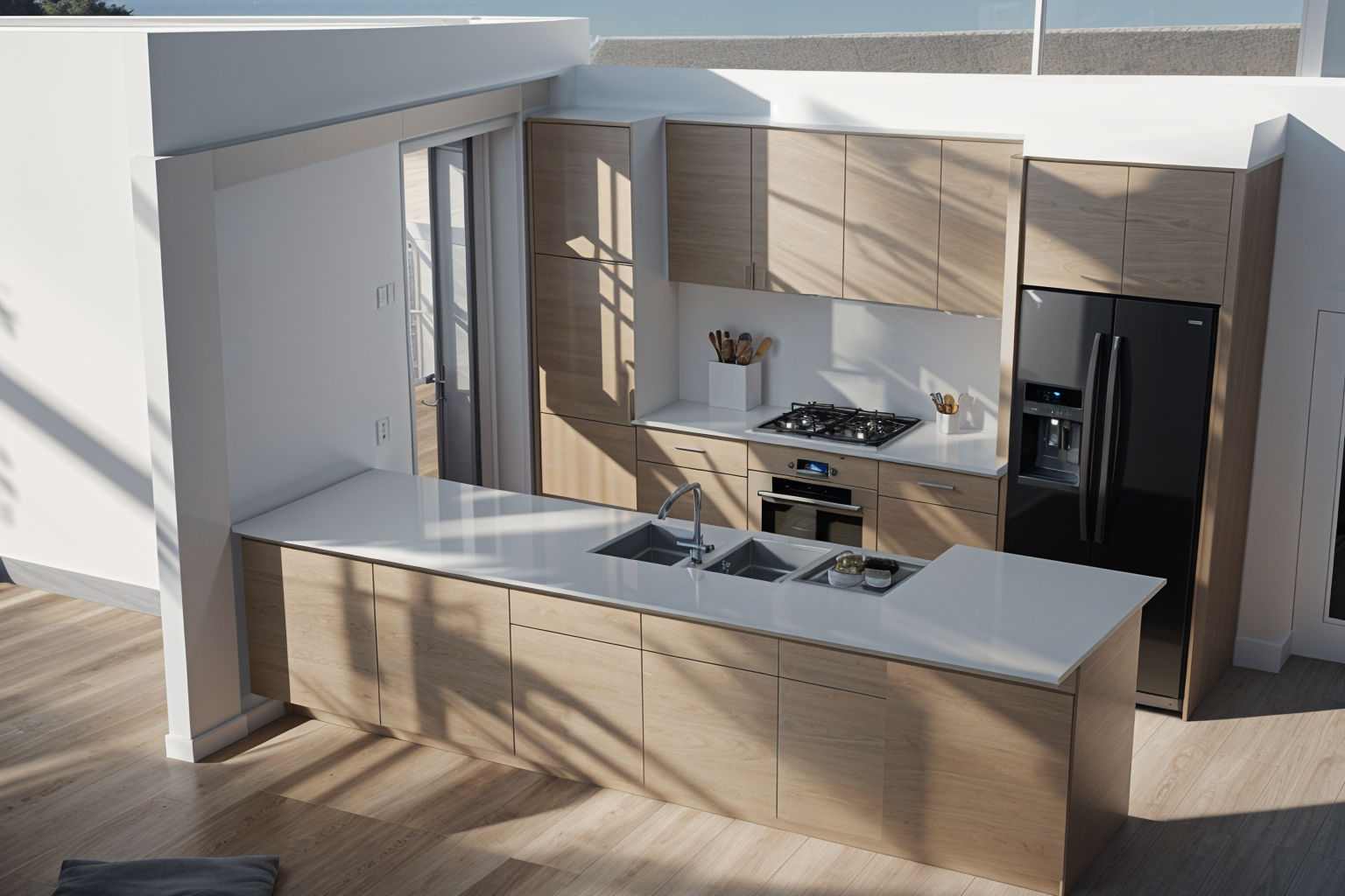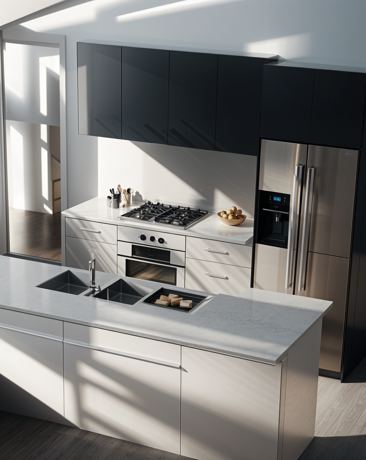 functionalism exterior shot modern dark kitchen cupboards architecture