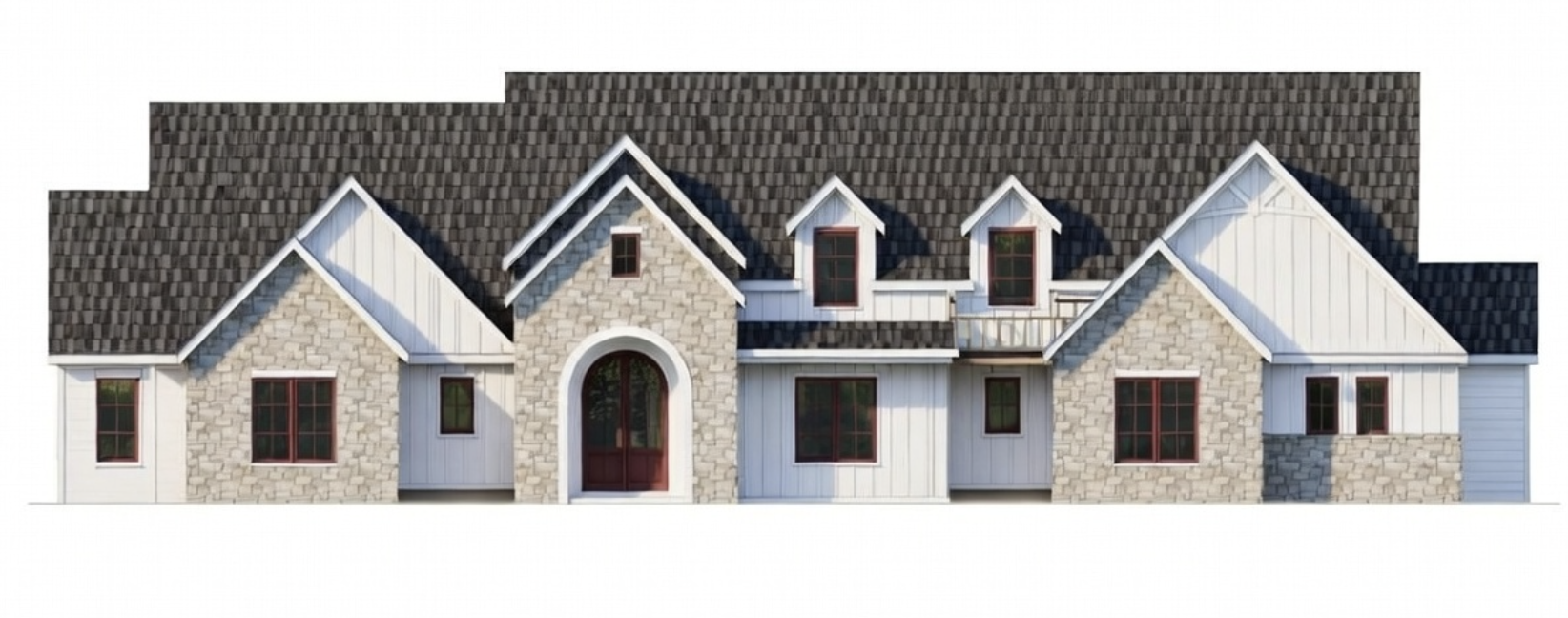 i need a photo realistic perfected version of this front elevation fix the front porch roof overhang
