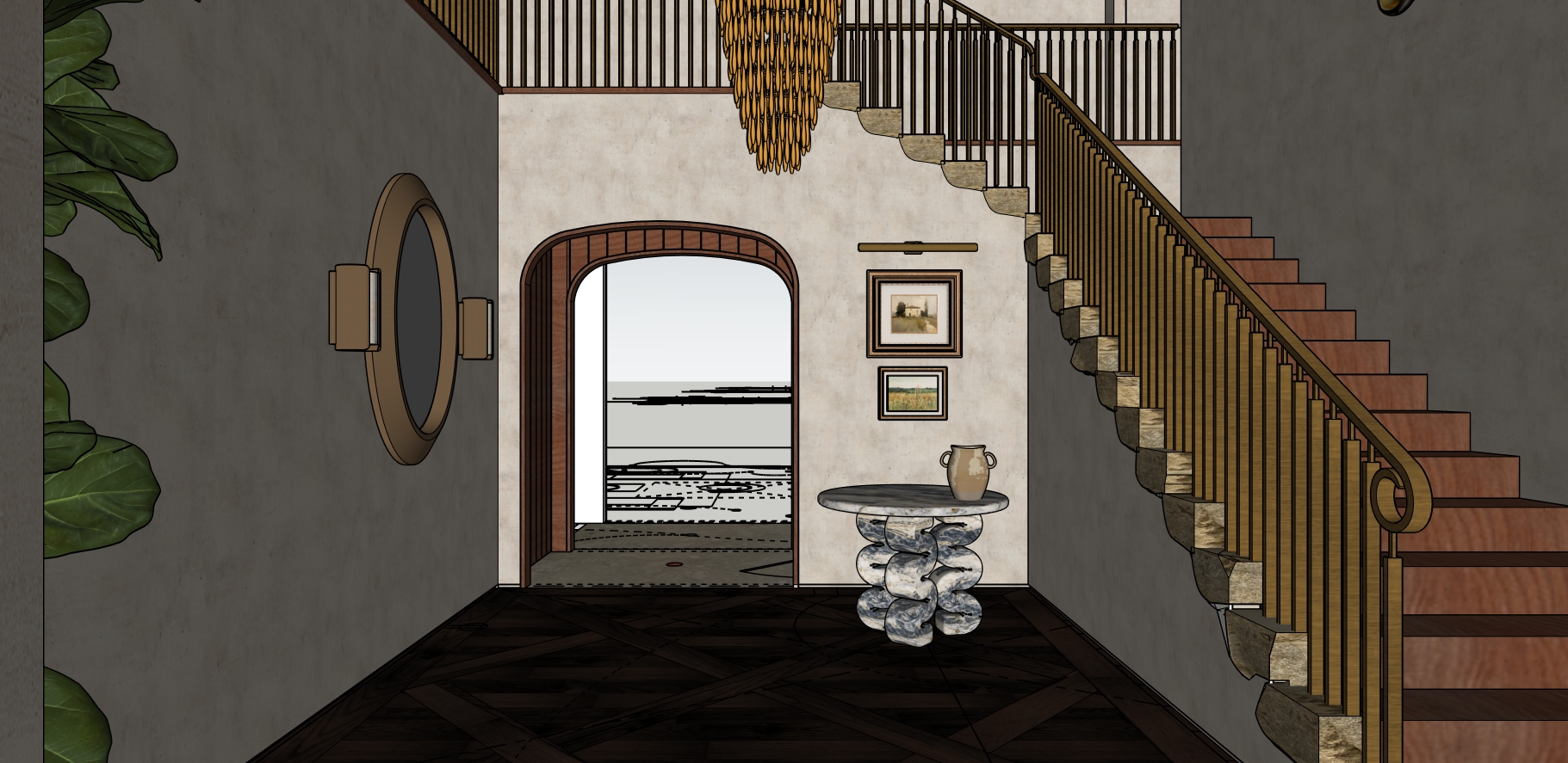 walls and ceiling to be roman clay maintain materials tone and geometry