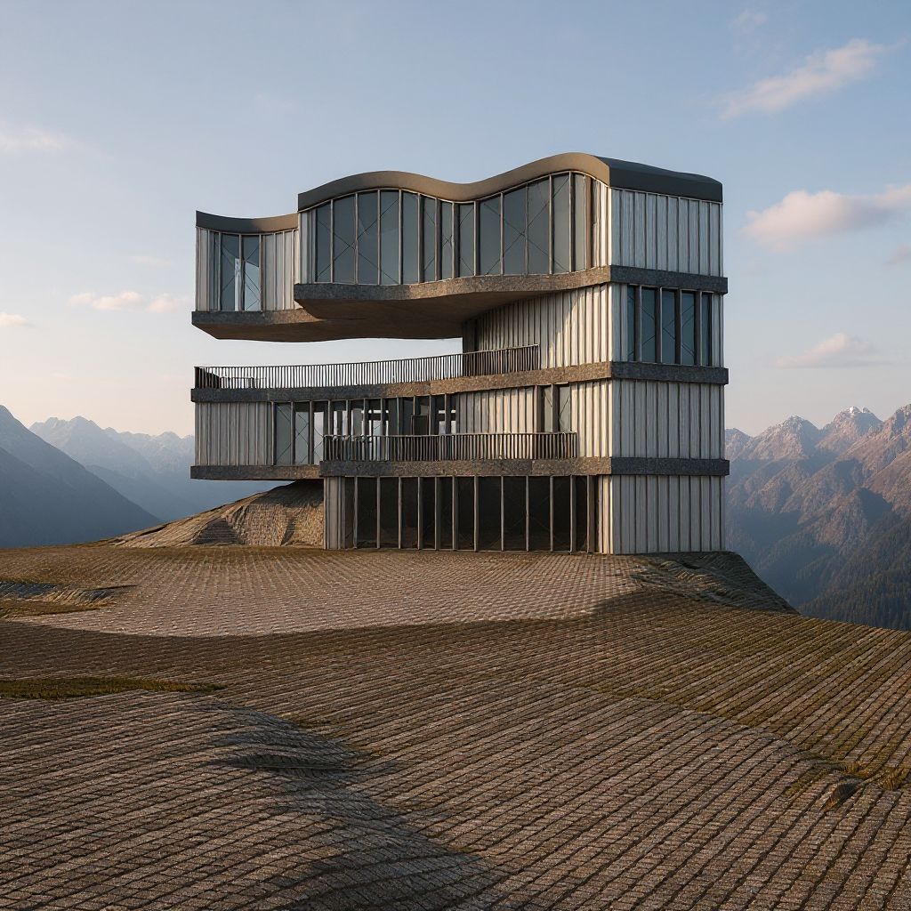 i want the facade to be light gray panels with concrete slabs for balconies i want the glass to be more see through