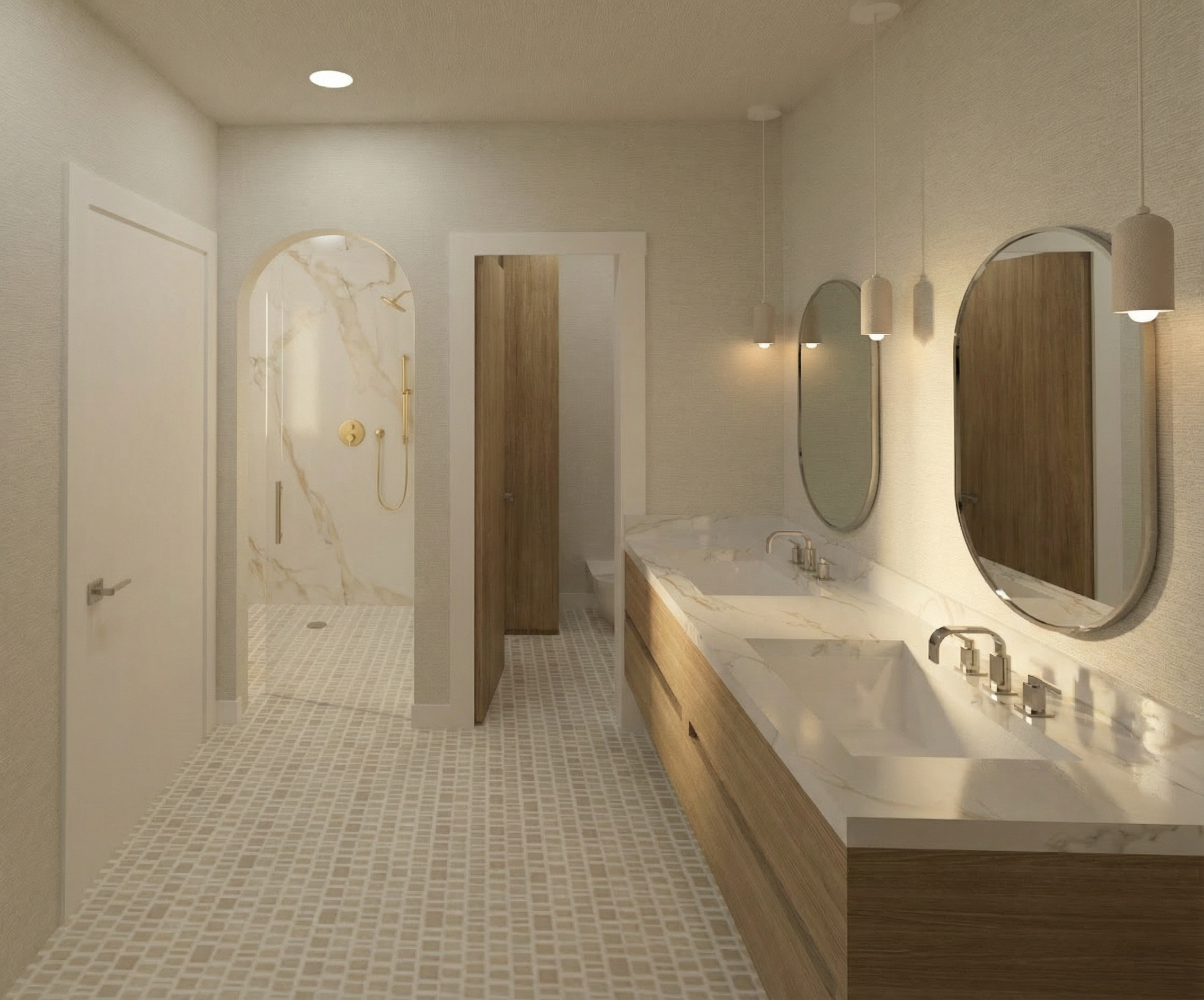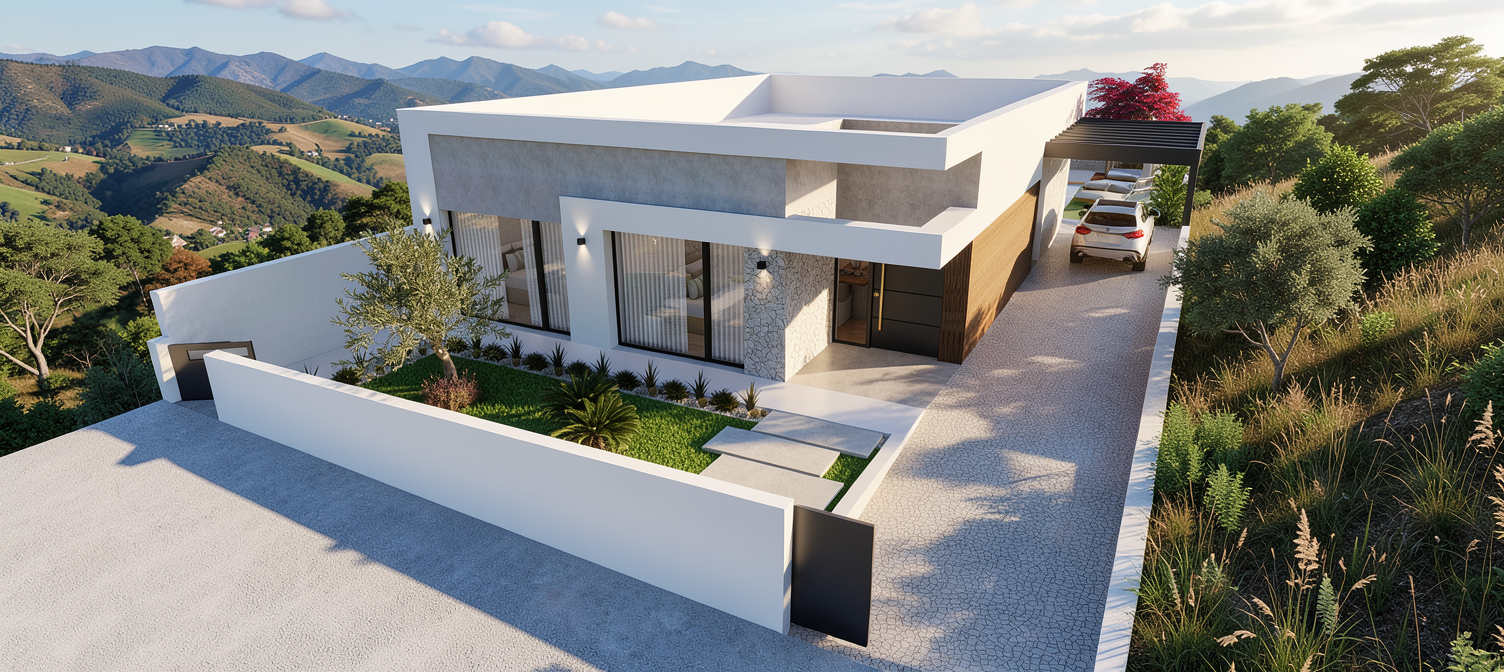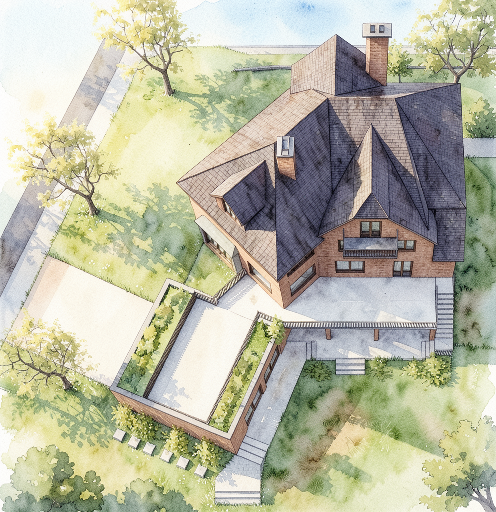 a manicured lawn layered flower beds low maintenance shrubs native plants stone pathway leading to the entrance