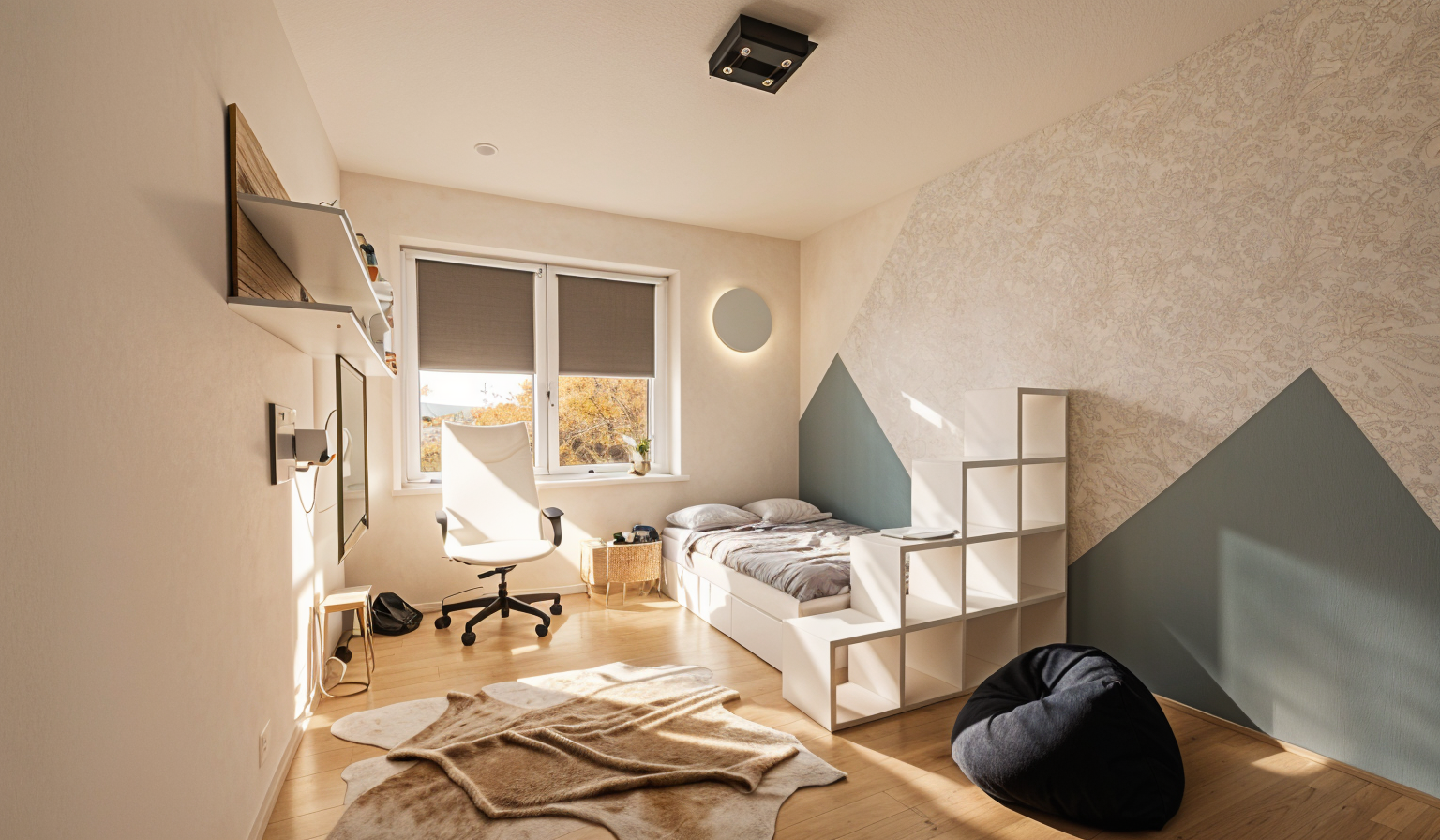 create a photorealistic architectural render of the provided building while preserving the exact geometry proportions facade rhythm openings roof form and camera angle from the source image do not redesign the architecture use an aluminum facade with base color ral 9006 throughout the main facade surface must be executed in perforated corrugated metal in ral 9006 all facade frames must be finished in ral 9006 all window frames must be finished in ral 9006 all other closed facade infill panels must remain solid smooth and non perforated in ral 9006 the rooftop structure roof extension must likewise be finished in ral 9006 apply the perforated corrugated metal finish only to the main facade surface while preserving the exact facade composition panel layout openings and proportions the canopy must be expressed in exposed concrete the wall below the canopy must also be in exposed concrete the round column underneath the canopy located at the building corner behind the glazing must remain clearly visible through the glass and must also be finished in exposed concrete arrange a small clearly organized parking area in front of the right side facade of the building show only two to three cars in total all cars must be parked exclusively within this parking area and always orthogonally to the facade at a strict 90 degree angle the cars must be aligned neatly in clearly readable parking bays no diagonal parking no parallel parking no random vehicle placement no overlapping cars no distorted vehicles and no cars on grass planting areas or pedestrian paths add only very few people to the scene placed subtly and realistically in plausible pedestrian areas such as near the entrance or along the forecourt the people must remain secondary to the architecture create a friendly and slightly warmer summer atmosphere with a calm elegant and inviting competition style architectural ambiance the overall environment should feel more welcoming pleasant and human centered while remaining refined and realistic in the background show a flat commercial area with low rise warehouse buildings and simple industrial halls understated and secondary to the main building on the left side in front of the building there must be only a green grass area with no street no road and no sidewalk close to the building itself include a few trees and restrained planting to create a greener softer and more welcoming immediate setting keep all planting clearly separated from paved circulation and parking areas use soft neutral summer daylight with diffused light very gentle shadows and balanced exposure minimize direct sunlight on the facade keep reflections very soft and controlled the facade should remain evenly lit clearly readable and free from harsh glare bright specular highlights or strong reflections no morning light no evening light no golden hour no sunset mood and no dramatic sky the final image should be refined realistic professional welcoming and suitable for a high end architectural competition presentation no redesign no changed geometry no changed panel layout no changed facade rhythm no distortion no warped perspective no exaggerated reflections no harsh facade glare no oversaturated colors no clutter no dramatic weather no overcrowded scene and no street or sidewalk on the left side in front of the building