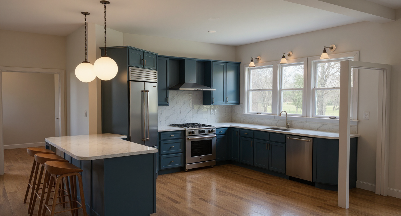 keep existing colors and architectural details show home in morning sunlight lighting with fir trees in the background distance