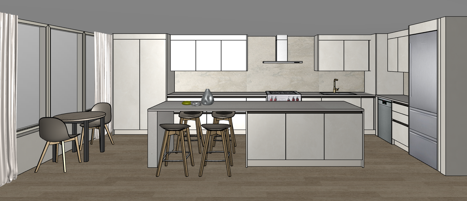 under no circumstances should you add accessories or shadows above cabinets do not do not add handles to cabinets do not add a light fixture of any kind to the ceiling keep the fridge all stainless steel