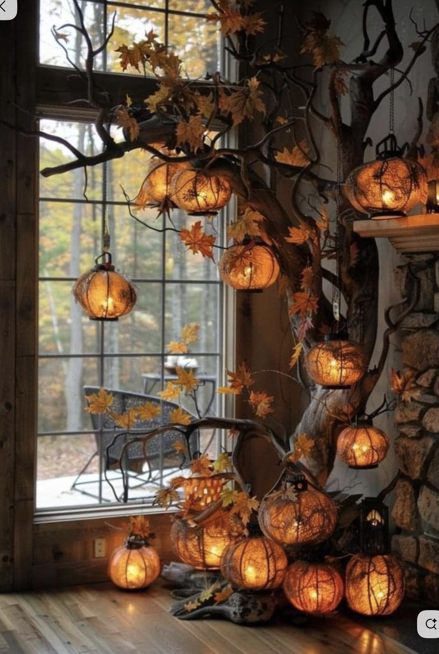 exterior shot create moodboard doe sophisticated beer garden decoration with halloween theme is around it is night time and venue is at a patio in front of a grill restaurant there are light bulbs hanging on strings above the guests and it is adult party vibe not kiddish scary halloween texture and colors can be orange antique wood raw iron leather