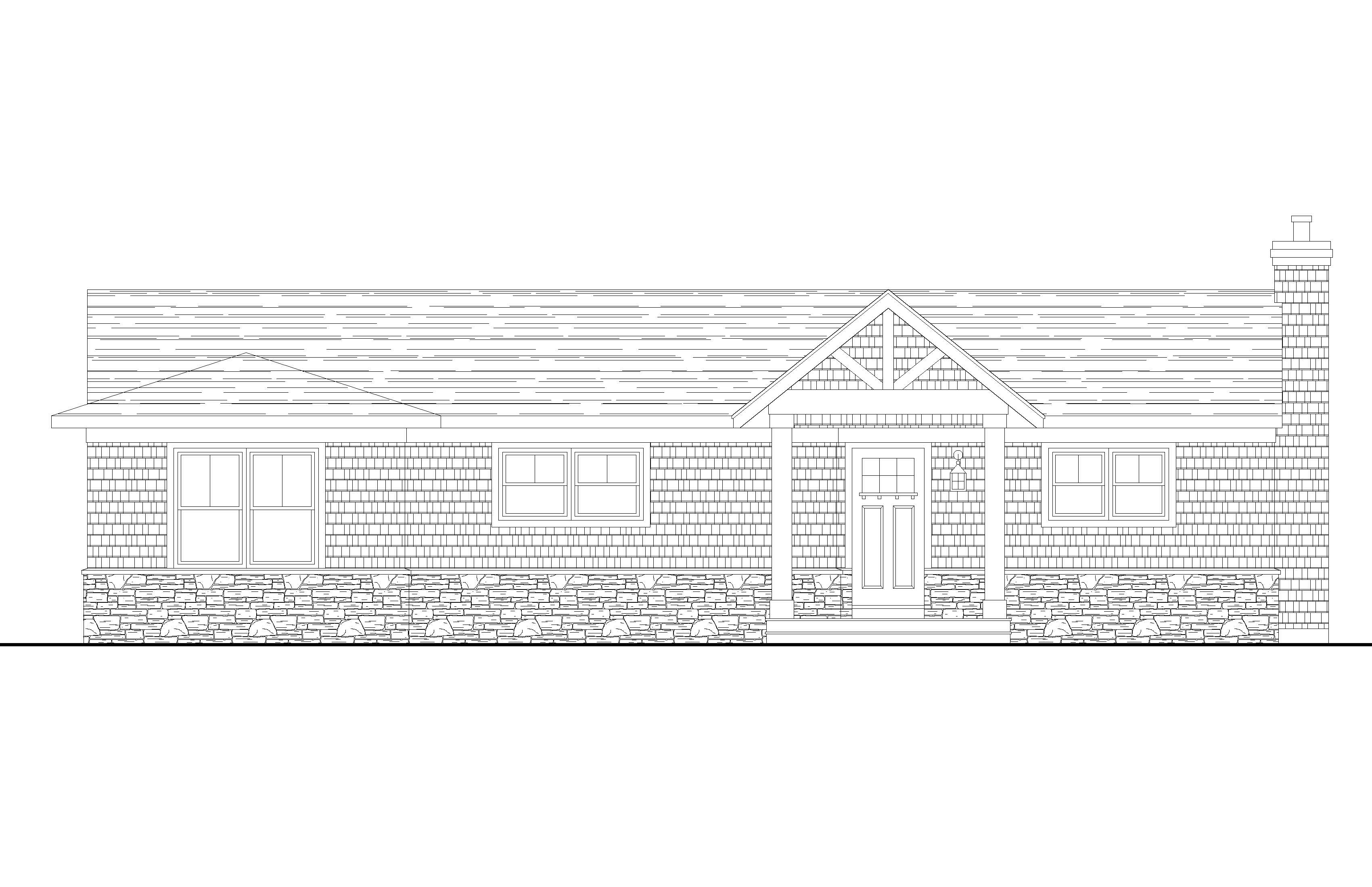 exterior shot black roof natural cedar perfection shake natural wood at covered porch antural stone base white trim white windows boat canal in back ground with mature pine trees