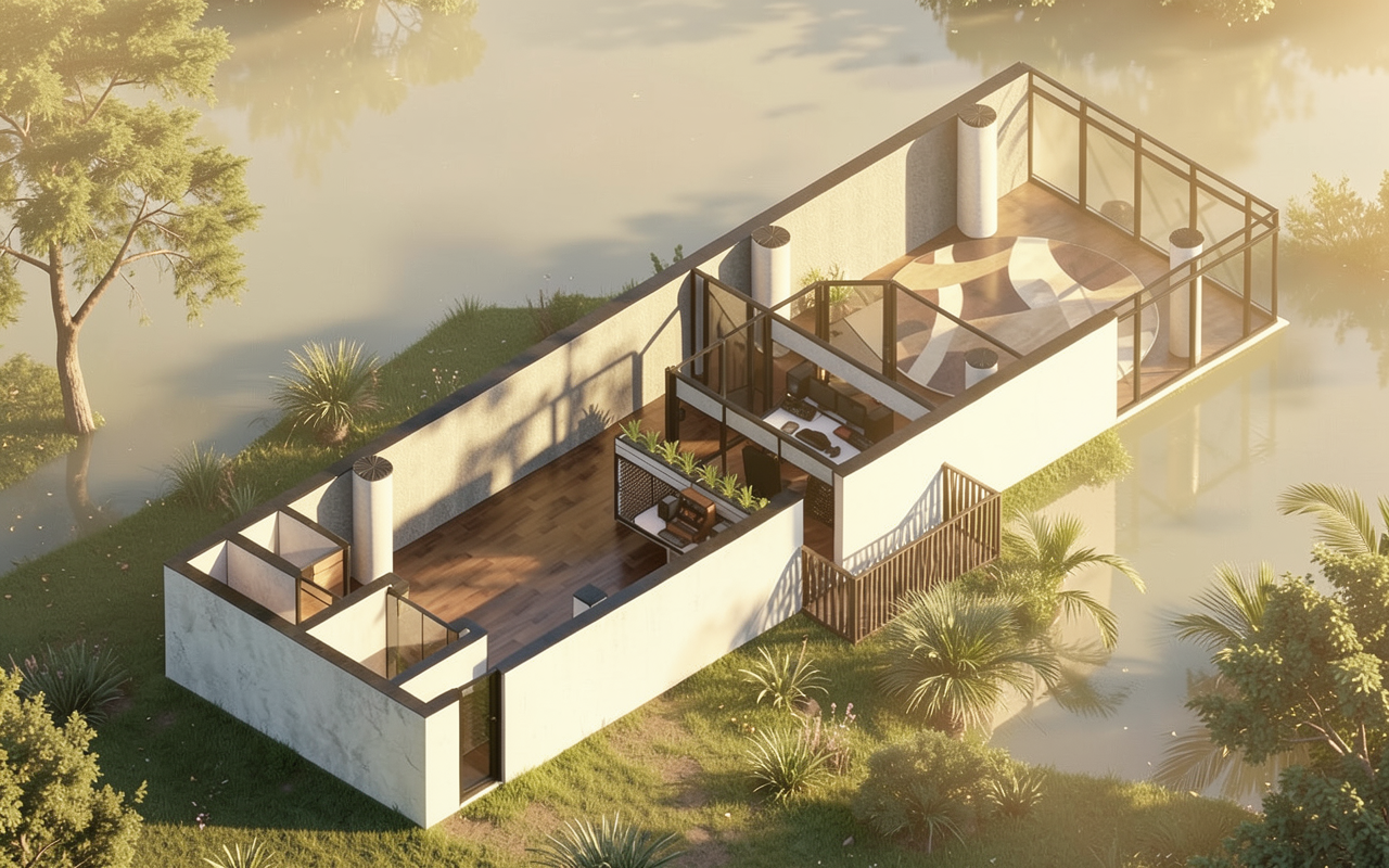 the rendered image should feature clean natural daylight as the dominant light source with soft diffused daylight entering through large openings the lighting should be well balanced avoiding excessive contrast or overexposure while ensuring that details remain clearly visible even in shaded areas the scene should also include 4000 kelvin interior artificial lighting the neutral white tone of this lighting should harmoniously complement the daylight the artificial light must not dominate the scene it should subtly enhance spatial depth and highlight material textures colors must remain accurate and natural with no color shift toward warmer or cooler tones the white balance should be neutral and the render should faithfully represent the original material finishes and shades the overall image should be clean sharp and photorealistic matching the original design as closely as possible in terms of composition proportions and material representation avoid excessive post processing oversaturation or stylization the goal is a realistic and authentic visual presentation the light source comes from the left side but the window itself is not visible in the image