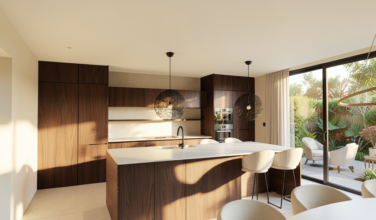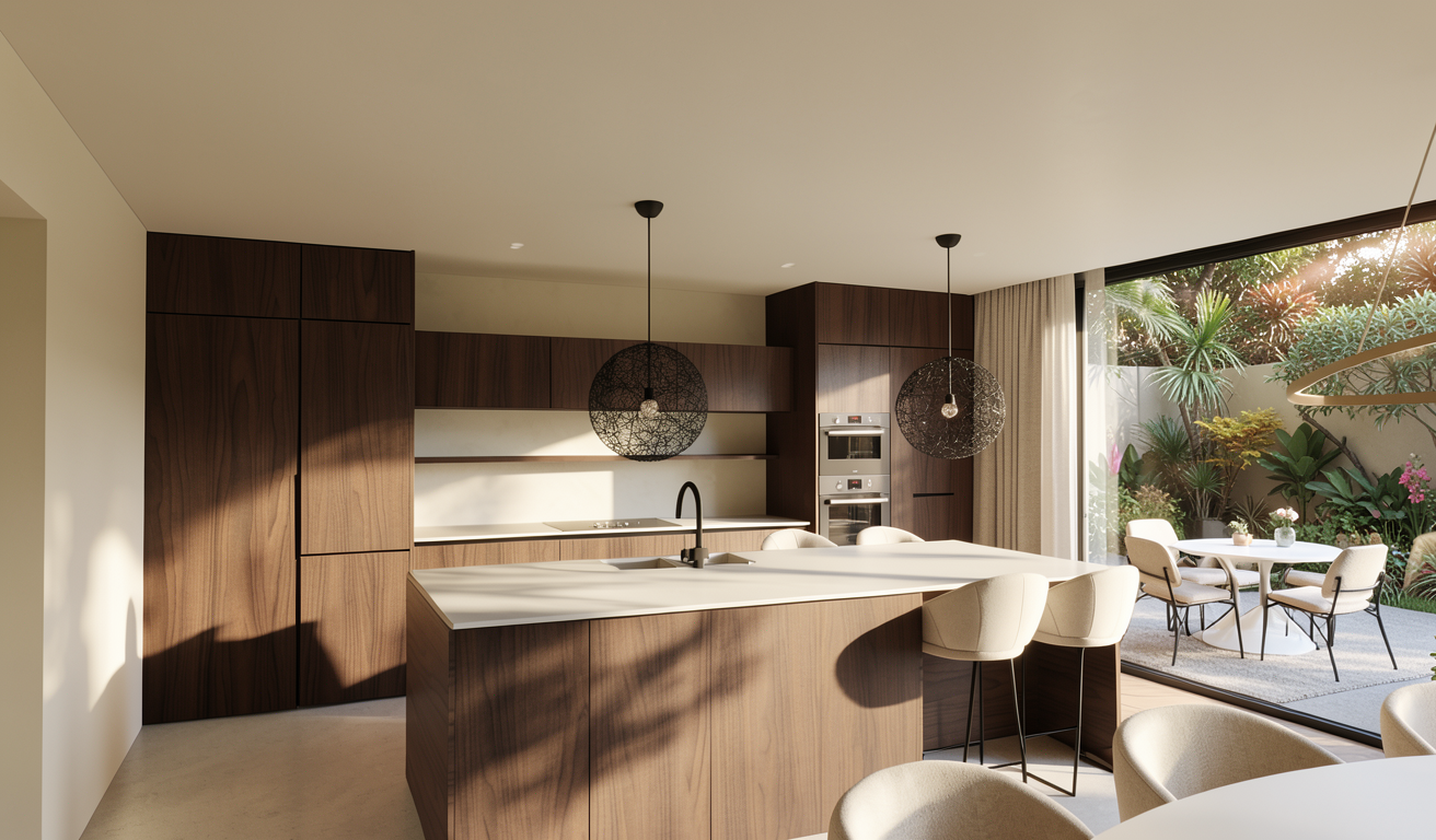 add black concrete roof tiles silver pearl rendering white soffits and facias white aluminium window frames resin bound driveway and plants to left hand side under window and wisterias up the canopy to the left hand side
