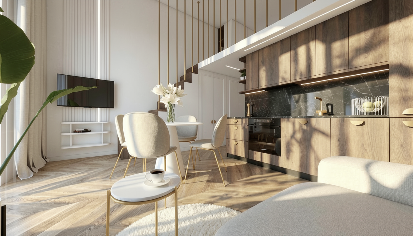 change the white tv stand by replacing the two central shelves with handleless white drawers leave the rest of the image unchanged
