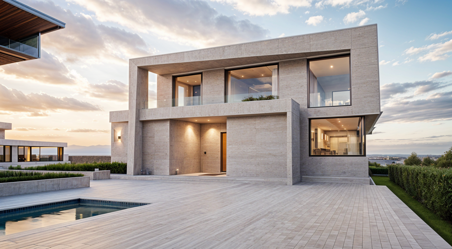interior from the top realistic detailed rendering of a 3d drawn model black steel cladding on roof and sides wood on floors black windowframes glass corridor with concrete floor no extra furniture inside cosy