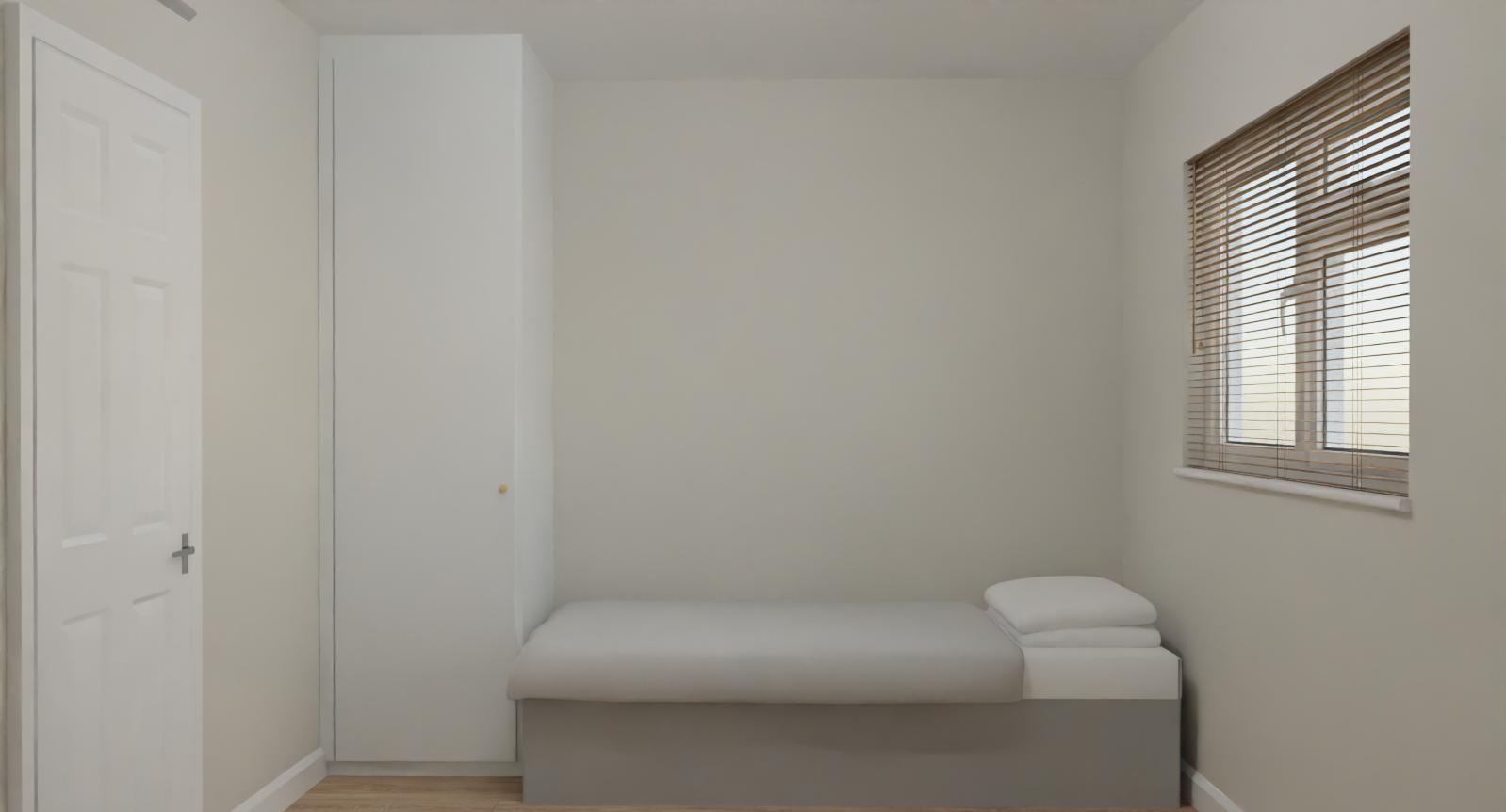 young girls bed add cushions and teddys to bed pink wallpaper behind bed realistic photo with natural lighting