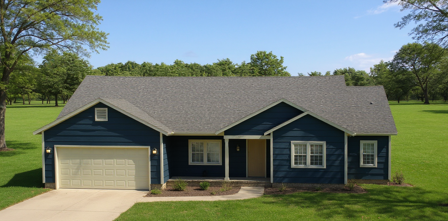 keep everything the same but change the siding color to dark gray shakes color to light gray and front door and roof color to black
