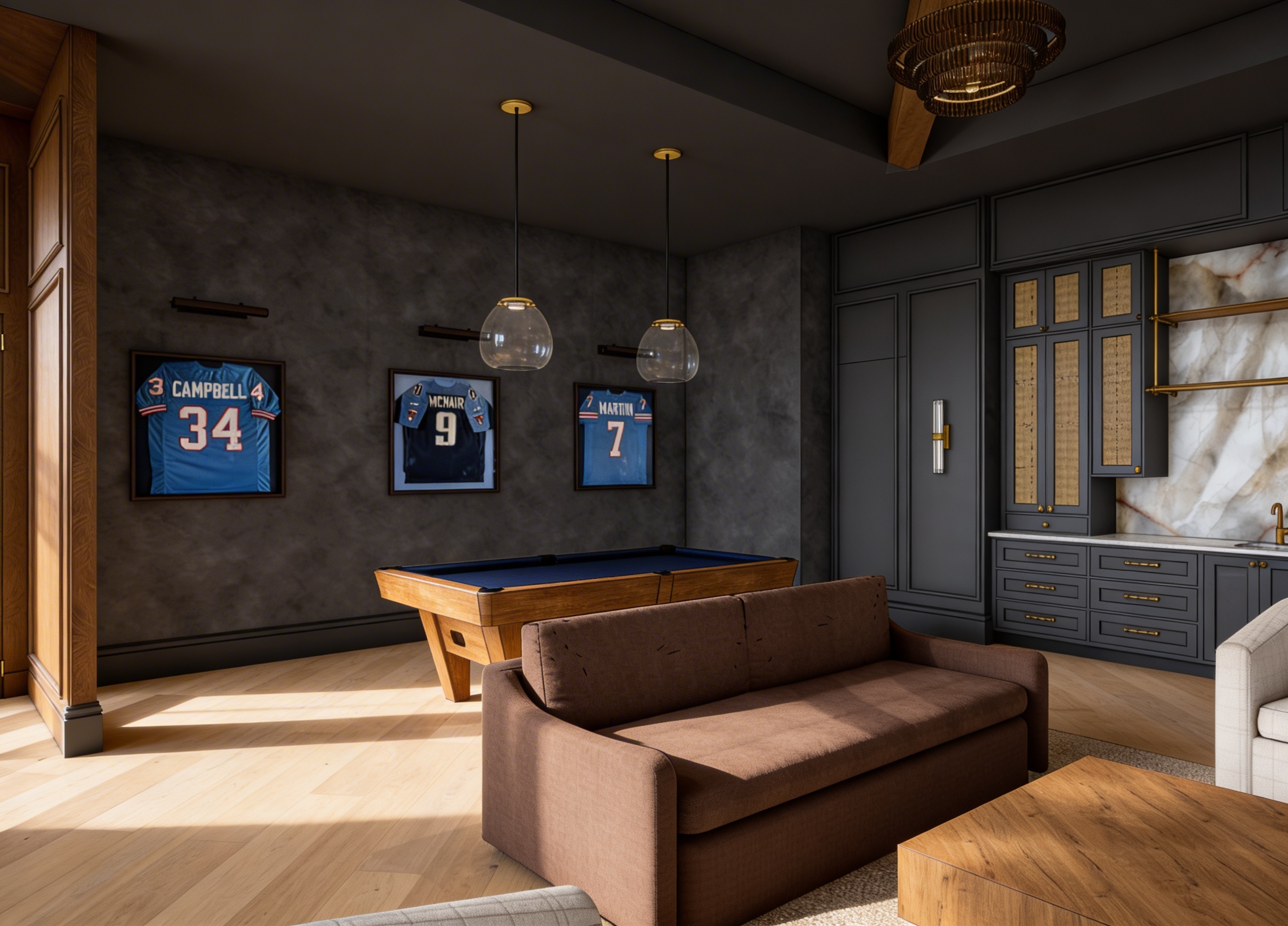 add several abstract art pieces on the wall behind the chair to vover the whole wall picture wall with multiple abstract art pieces leave evrything else the same