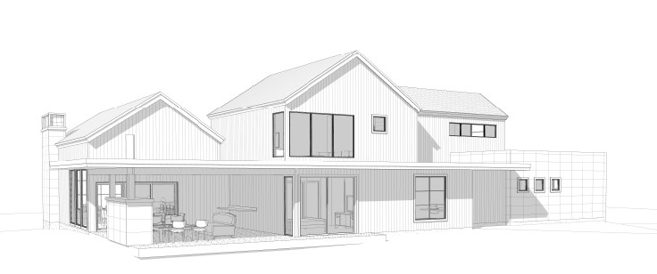 the siding is a light grey vertical wood siding the metal panels are a dark bronze the windows are black