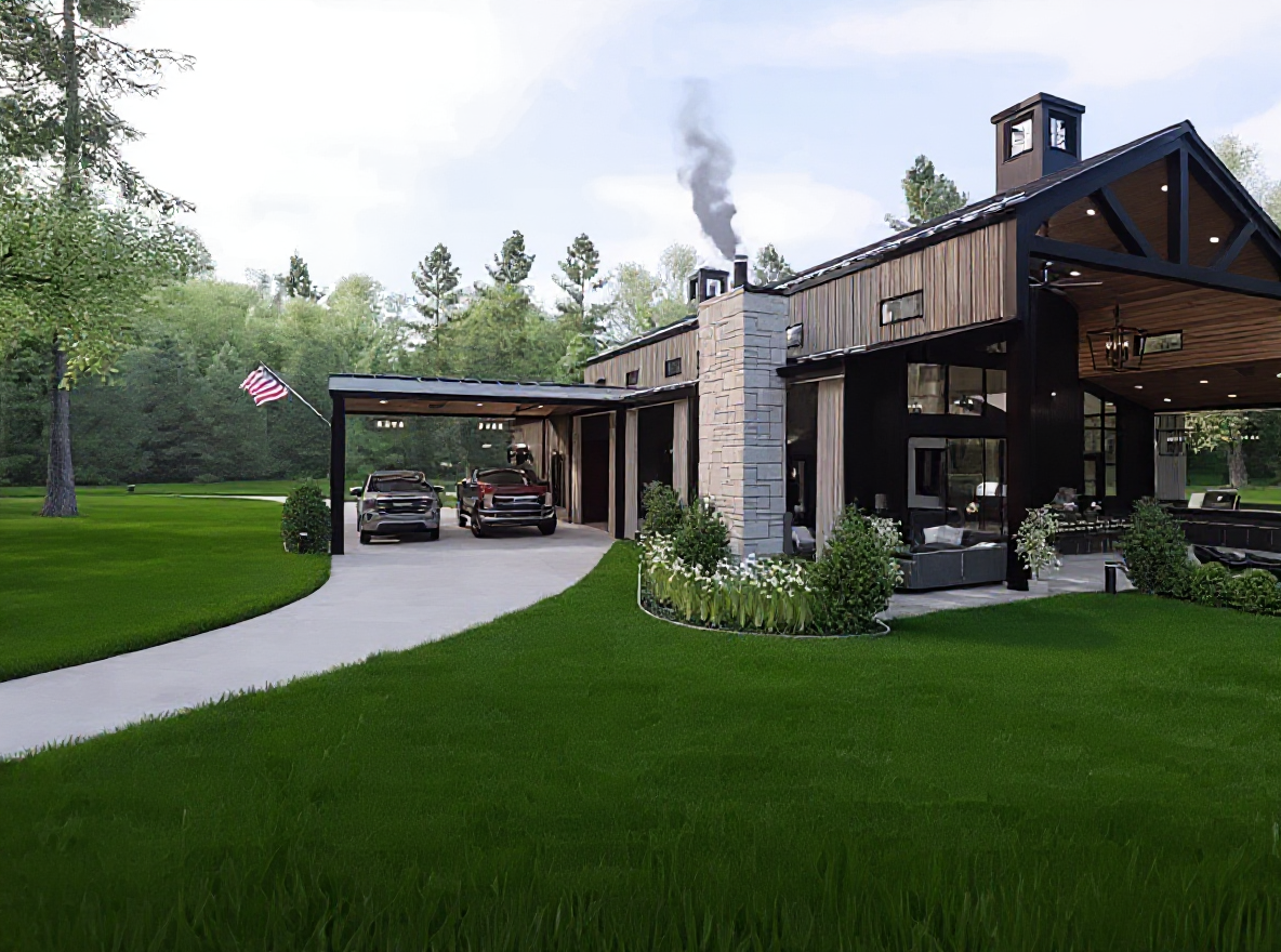 exterior shot do not change the photo and keep everything as shown only add walking people on the sidewalks in the photos in the middle and on the left on the flagpole hang a non fluttering lithuanian flag architecture