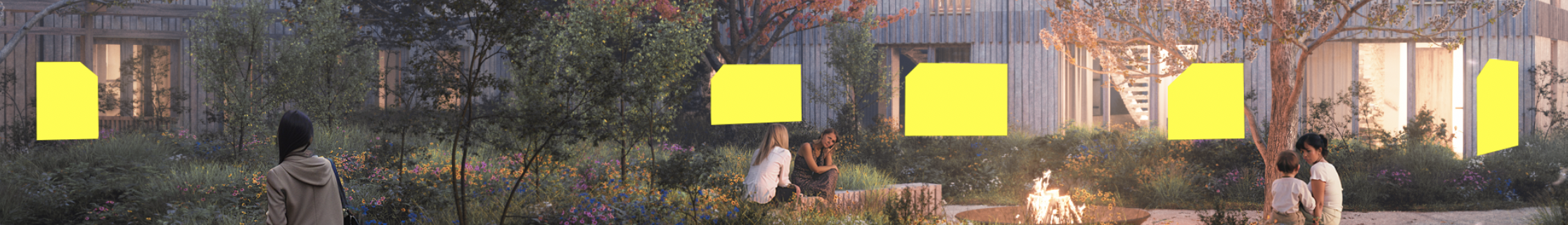 keep the lighting environment weather and time of day exactly as shown in the photo replace the yellow colored area with a wood screen strictly following the original shape and extent of the yellow area do not alter any other elements in the scene