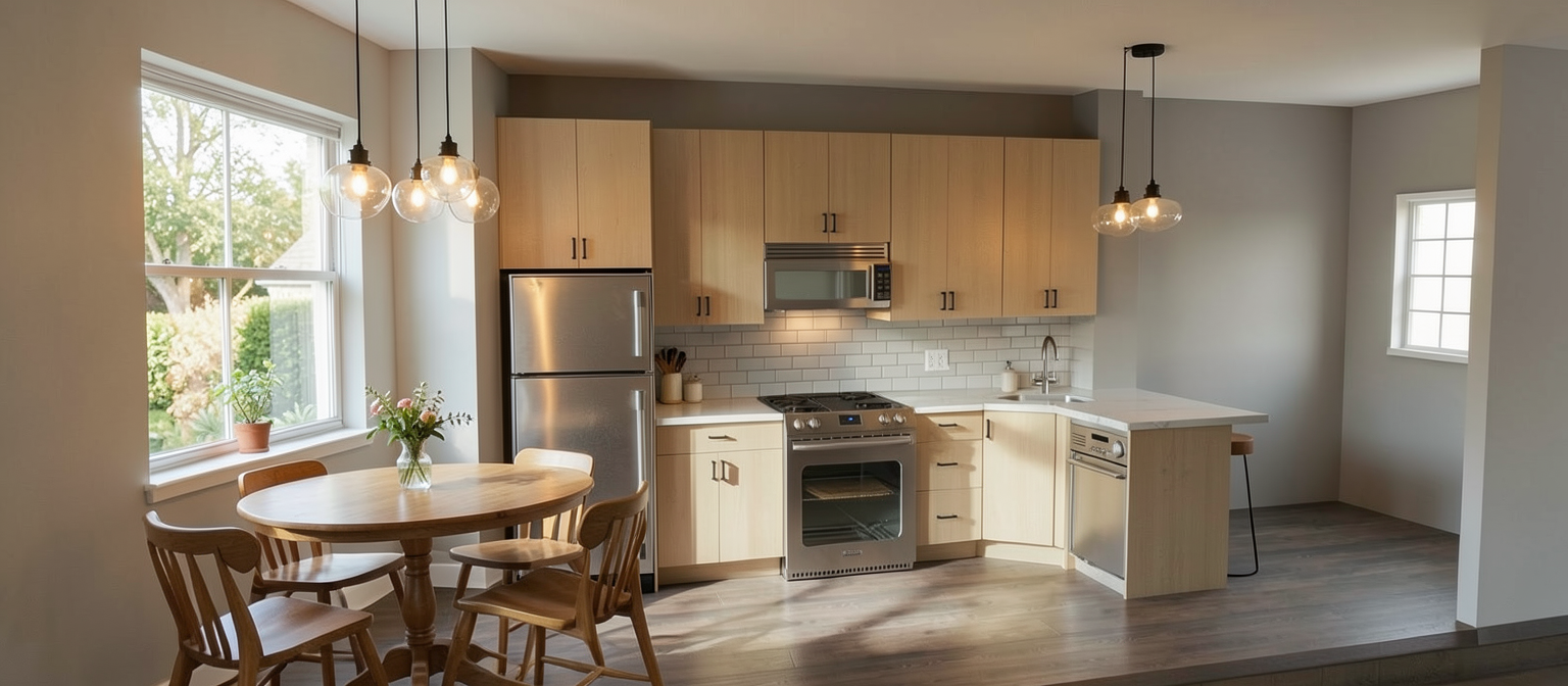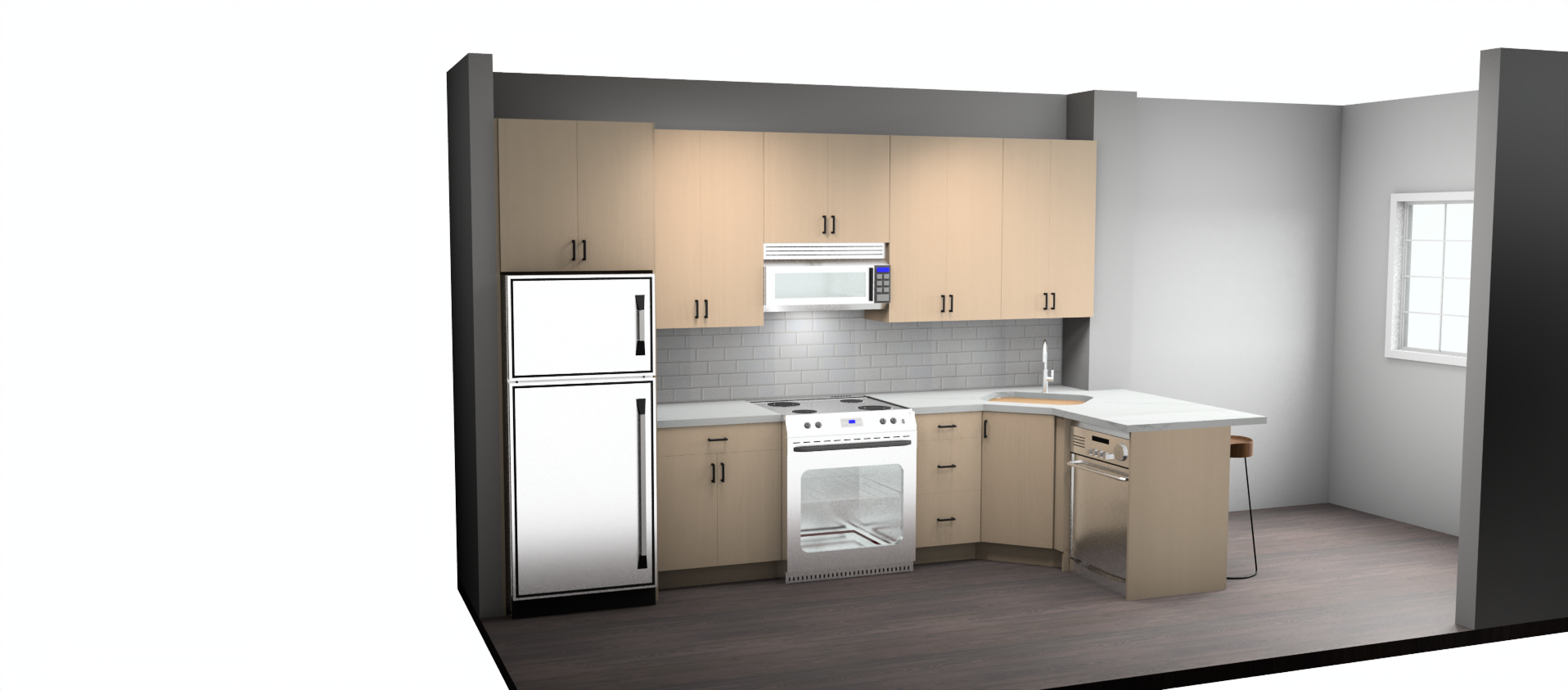 make realistic round kitchen table under window