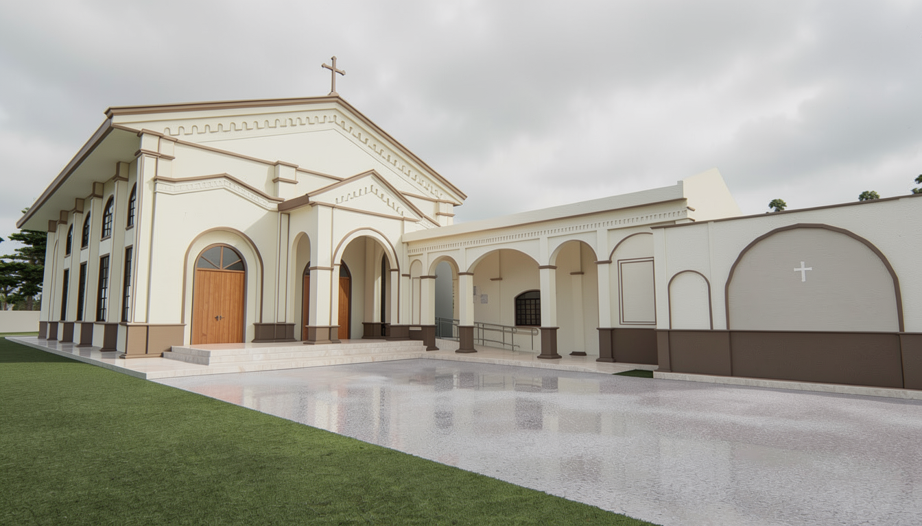 interior architectural rendering based strictly on the provided floor plan and reference photos eye level camera at exactly 1 65 m height centered on the main entrance axis the reception desk is positioned exactly on the central axis aligned with the monumental curved staircase behind maintain clear circulation corridors of exactly 1 80 meters on both left and right sides of the reception desk continuous from entrance to staircase exactly as shown in the architectural plan no changes to geometry proportions arches columns or staircase shape style ultra luxurious classical heritage grand hotel inspired by european palace hotels and eichholtz signature interiors materials walls finished in refined milky white stucco with subtle classical moldings and depth lower wall cladding in premium beige travertine with elegant stone profiling floor in polished marble with rich geometric inlays and subtle brass detailing reception desk designed as a monumental centerpiece fully clad in premium light marble with classic paneling carved details and brushed antique brass inlays stone staircase emphasized as a sculptural element with ornate wrought iron balustrade in dark bronze lighting large statement chandelier inspired by eichholtz designs sculptural layered brass arms with crystal or alabaster elements additional secondary decorative chandeliers or ceiling pendants aligned symmetrically elegant wall sconces in antique brass placed on columns and arches integrated indirect lighting highlighting arches staircase curves and the base of the reception desk warm golden ambient lighting ceremonial and dramatic furniture details luxurious eichholtz style table lamps on the reception desk with fabric shades and brass bases rich detailing and layered decor no empty or flat surfaces refined opulence controlled richness no minimalism atmosphere highly prestigious ceremonial and dramatic luxury grand palace hotel ambiance with strong visual impact unmistakably autograph collection important no people no modern minimalism no generic hotel lighting no empty surfaces no simplification of architectural details no futuristic elements no changes to camera angle or architectural layout