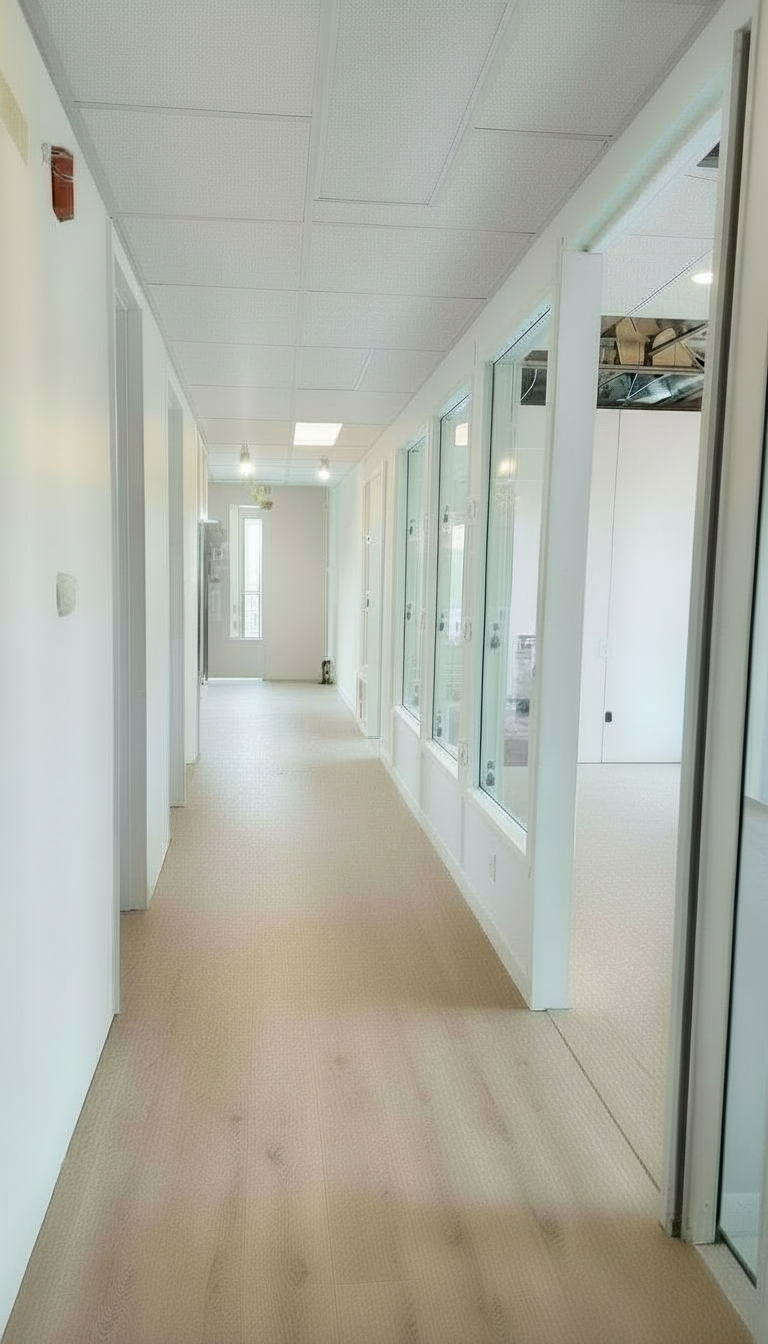 add some wall cladding in walnut color on the left side but keep the doors white