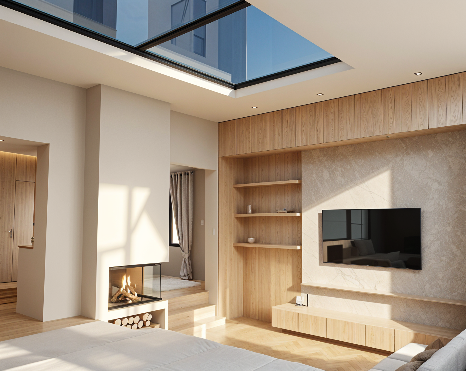 remove snow mobiles change white garage doors to wood remove tractor show man sweeping