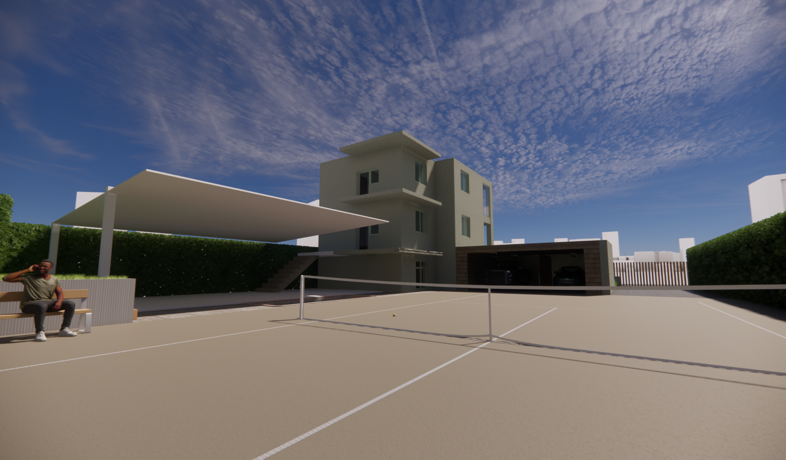 glass enclosed terrace with barbecue in the left part architecture