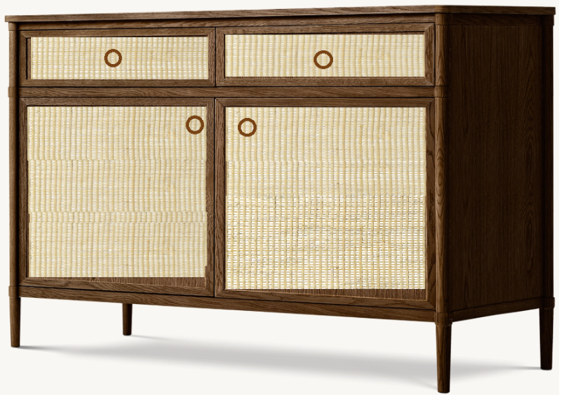 accent raffia weaving cabinet drawers and doors wood finish